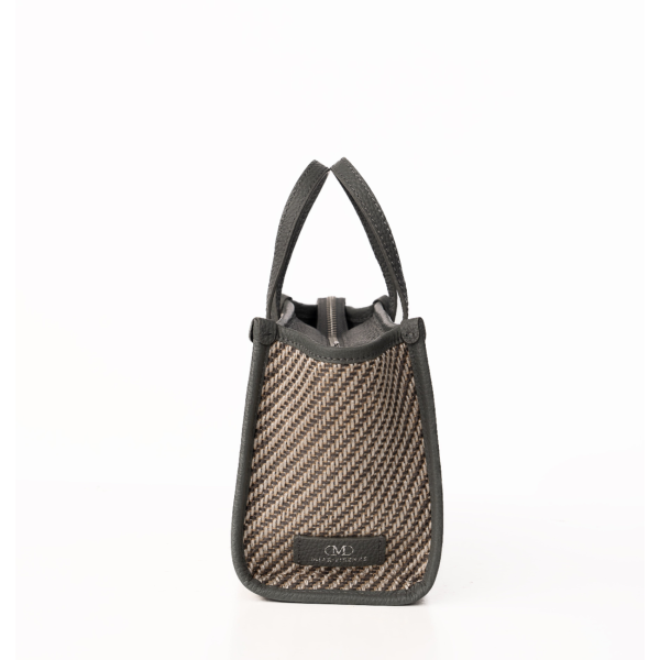 Blaire Mini Tote Bag is made with Weave fabric Material and Cow Leather with Black Twill fabric. This Bag can be wearable as a handbag or cross-body thanks to the thin detachable long strap. This bag is also available with 4 colors made with silver metal and zip closure with 3 cards slots