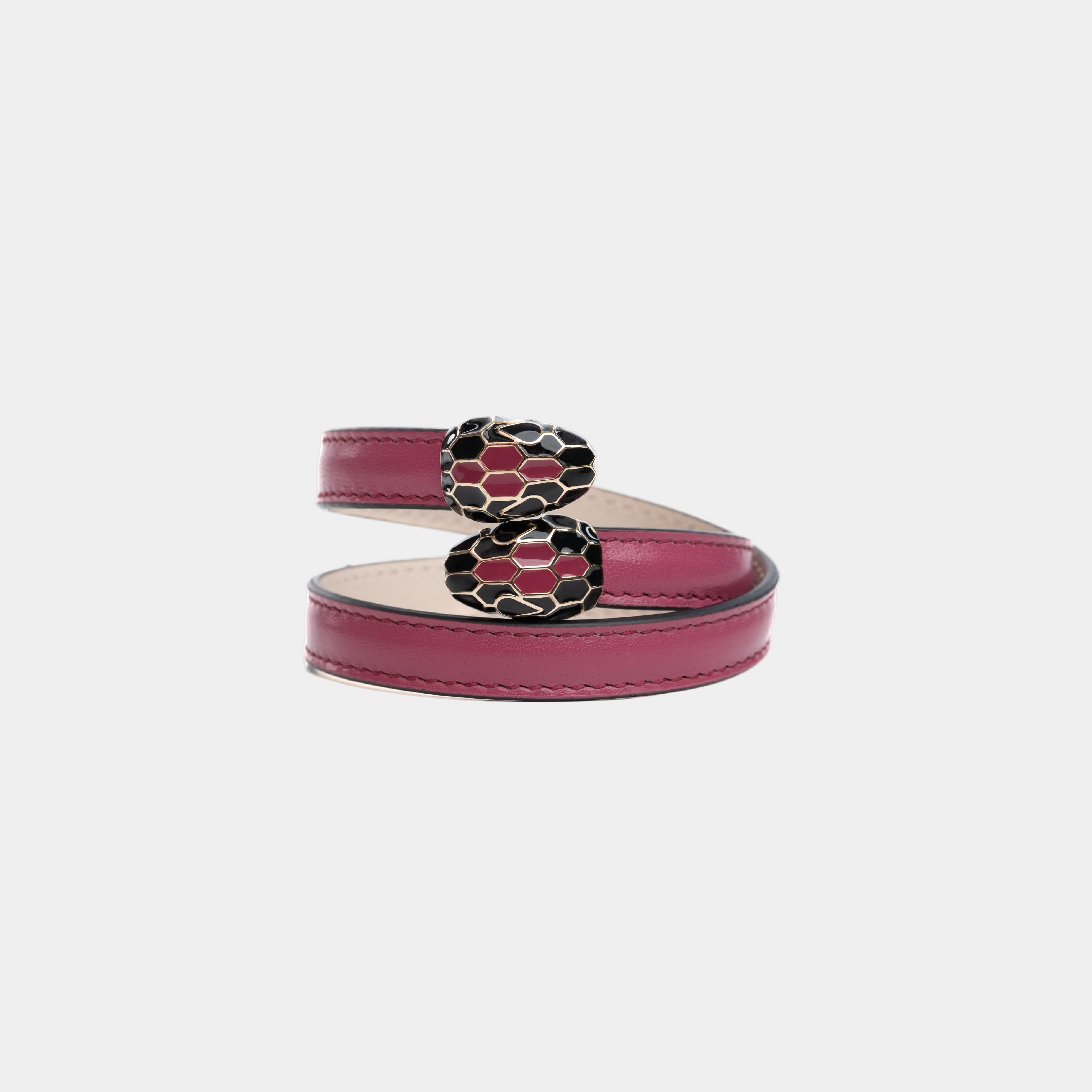 Serpenti Forever soft bangle bracelet in precious midnight plum Pure karung. Perfect for accessorising any day-to-night look, this model features an irresistible contraire iconic snakehead embellishment whose hypnotic coloured scales and mesmerising design draw from the signature Serpenti jewels of the 60s. 16.5 cm - 6.5 inches (wrist circumference). Made in Italy.
