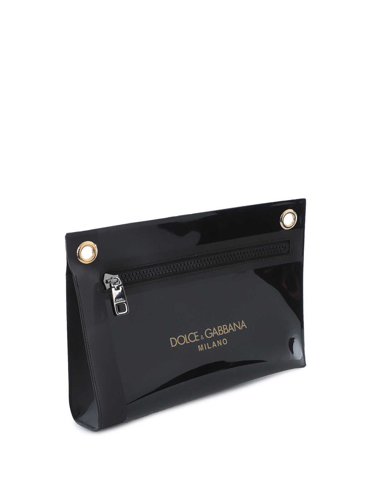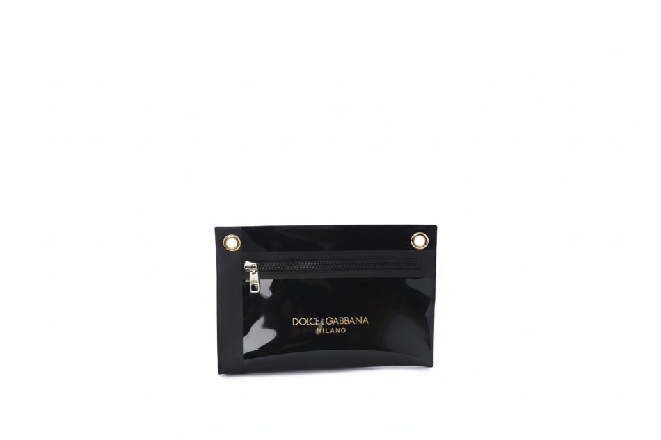 BLACK PVC LOGO EMBELLISHED POUCH