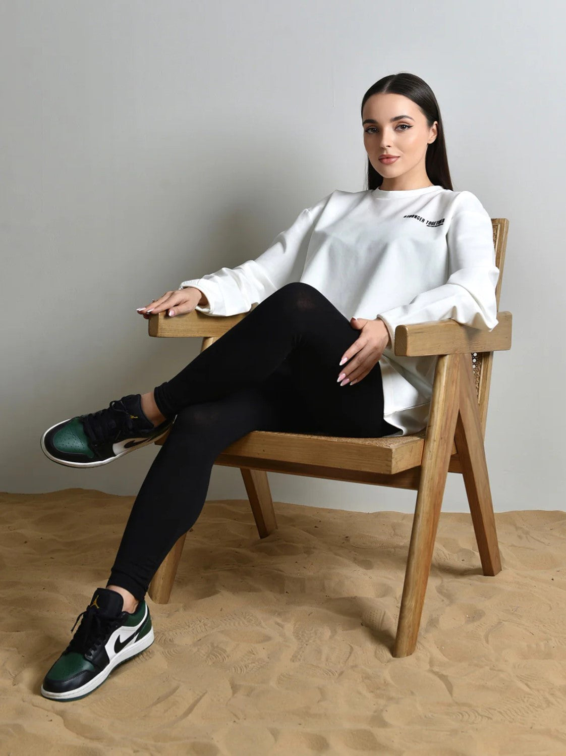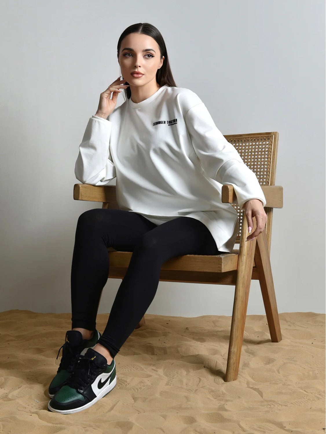 Introducing our Off-White Oversized long Sleeved T-shirt, a timeless and effortlessly chic addition to your wardrobe.