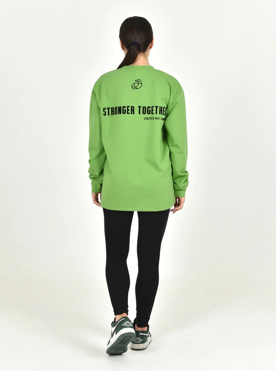 Long Sleeves Tshirt design with the Unity Message " Stronger Together, United We Stand " Super soft and comfy design offered in Blended fabric .