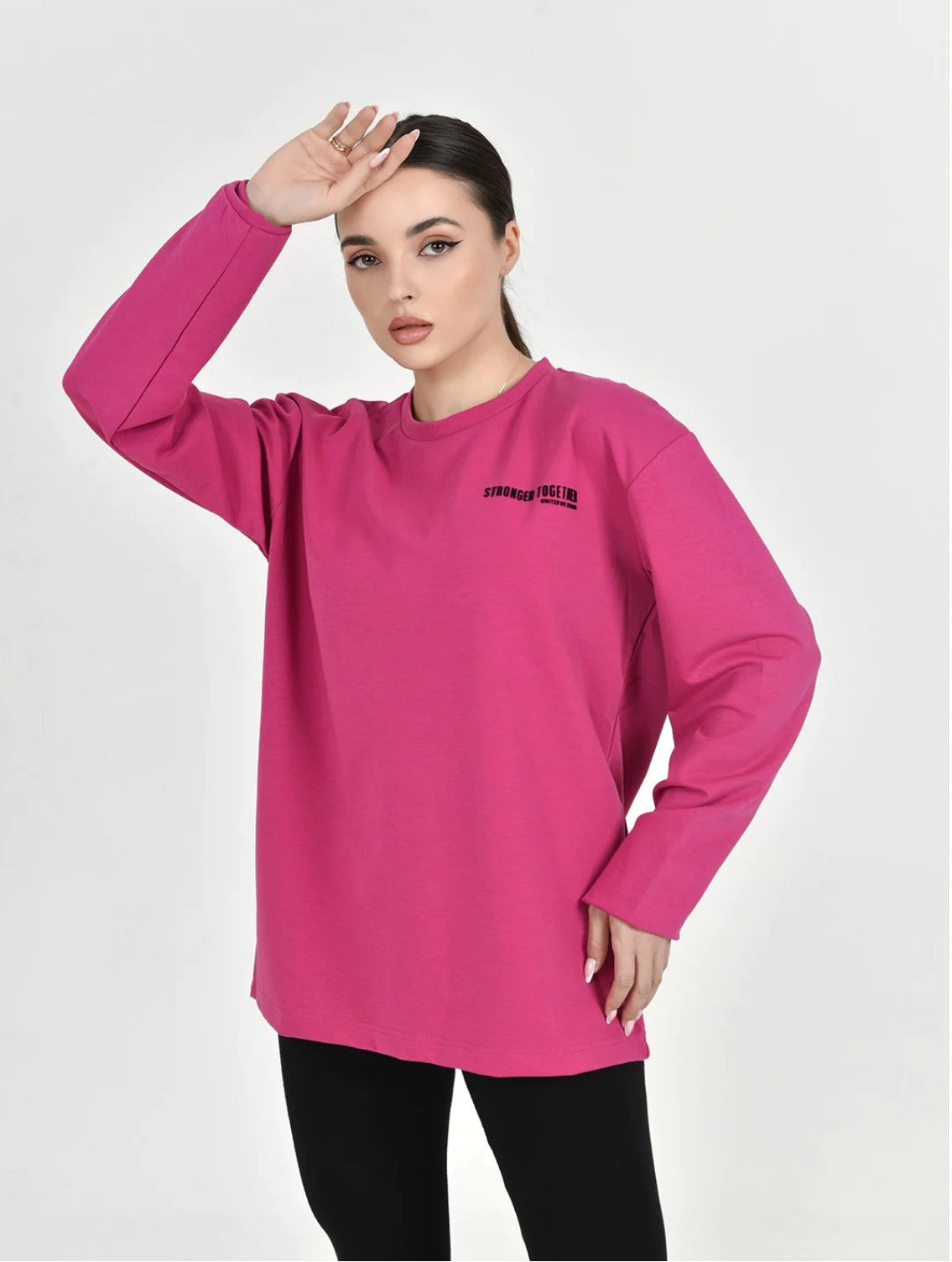 Long Sleeves Fuchsia color with Stronger Together, United We stand Message . Supper soft and comfy fabric .. The fit is oversize and available from XS to XXL..