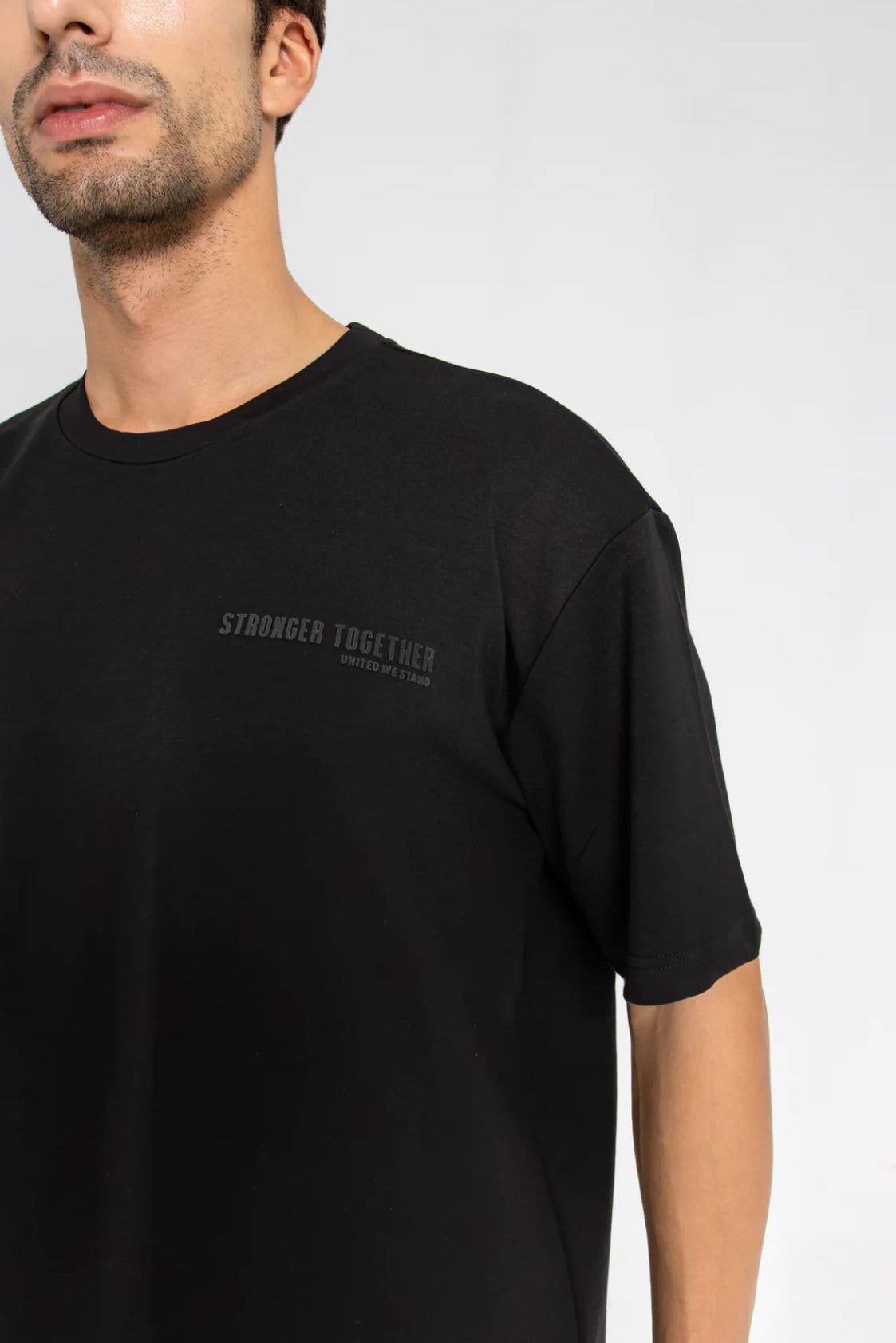 Introducing our Black Oversized T-shirt, a powerful statement piece that combines style and unity. Made from a high-quality fabric, this T-shirt offers both comfort and durability. The timeless black color adds a touch of sophistication to your ensemble, making it a versatile choice for any occasion. What sets this T-shirt apart is the inspiring message "Stronger together, united we stand" printed boldly on the back.