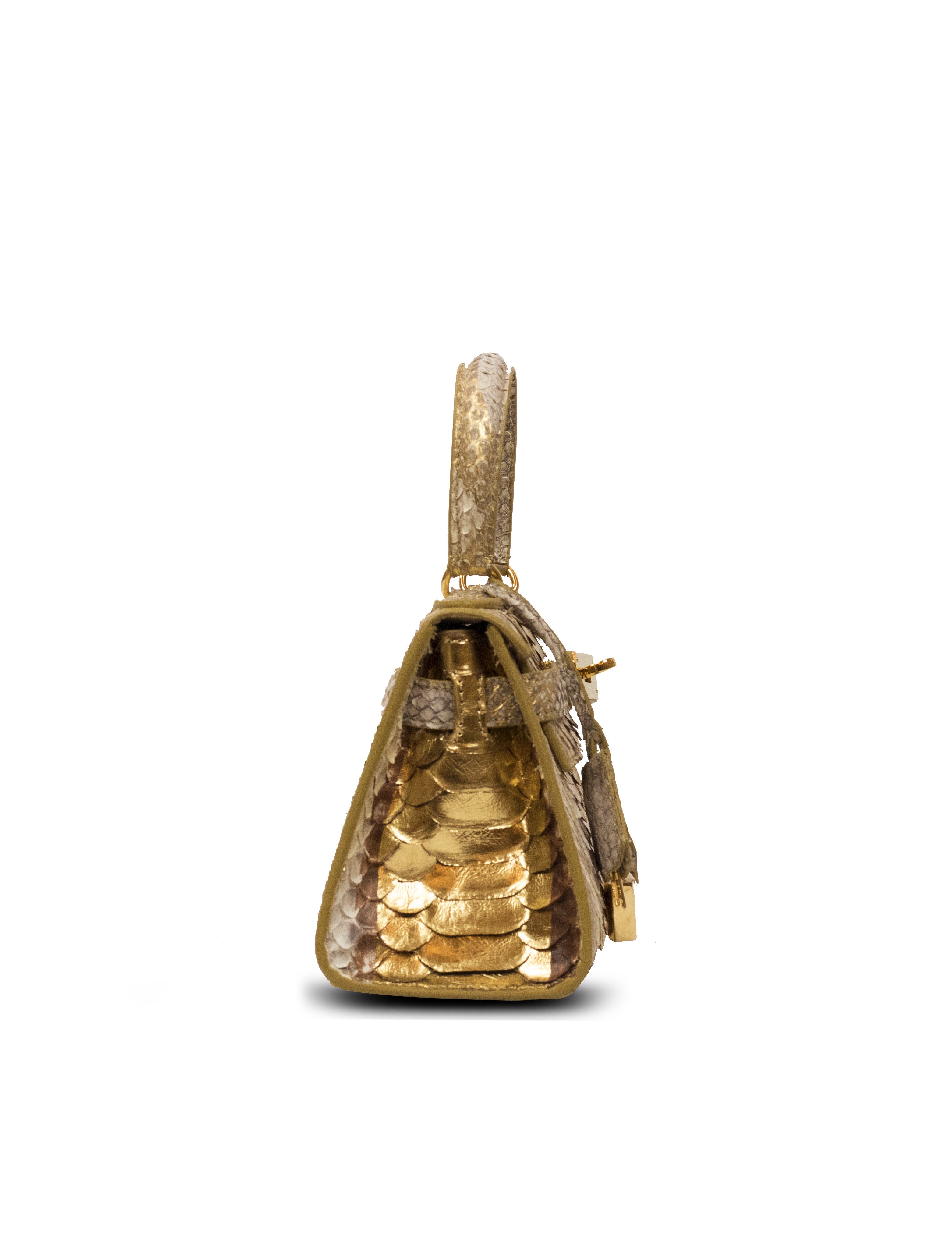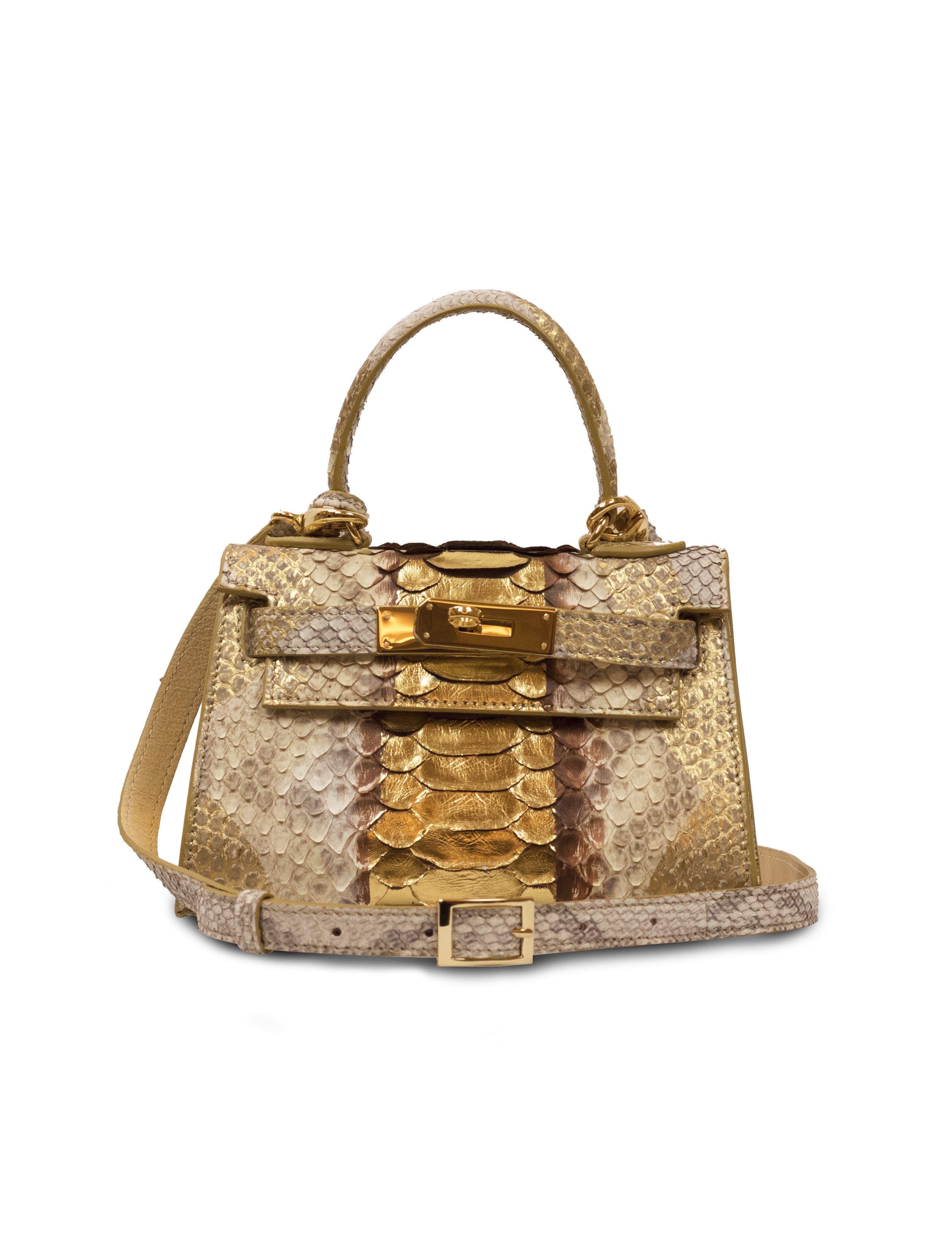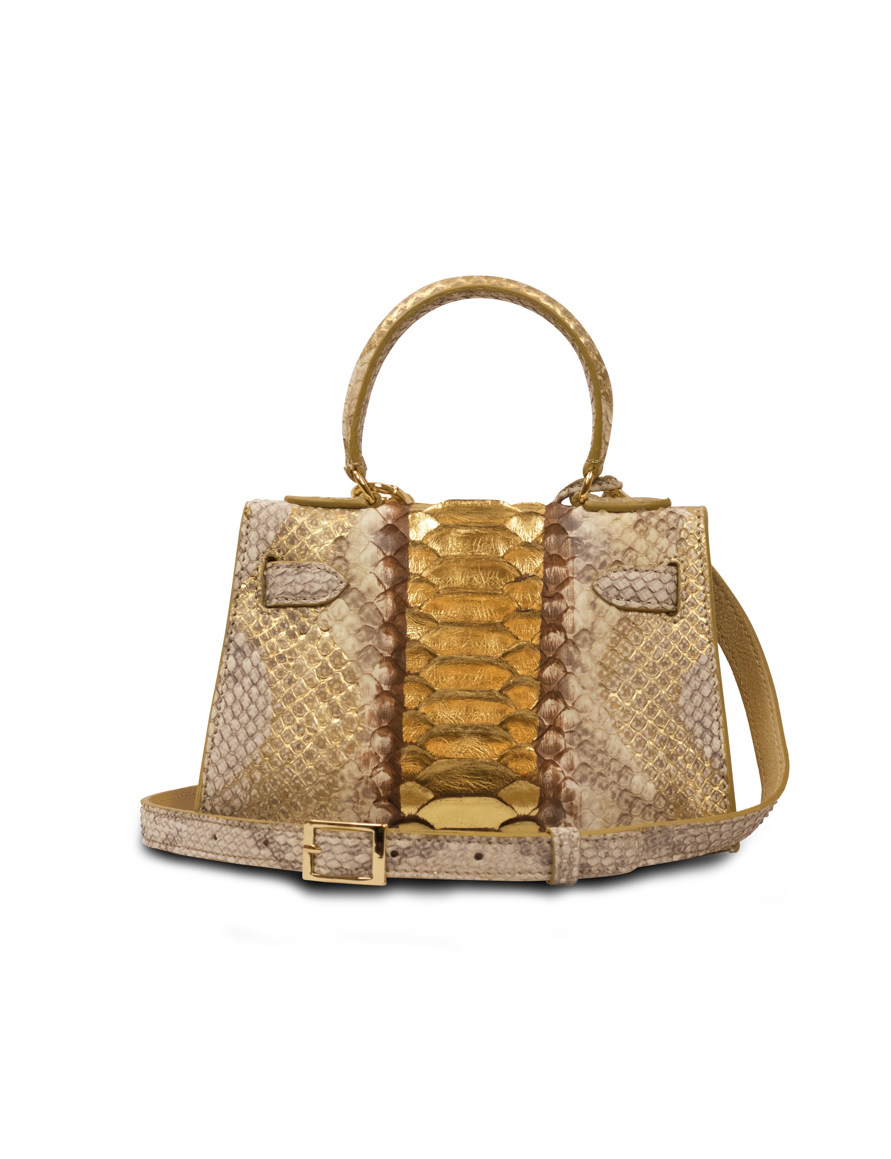 Eva 20 in python leather, with gold accessories.