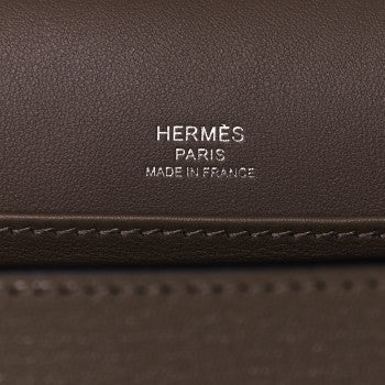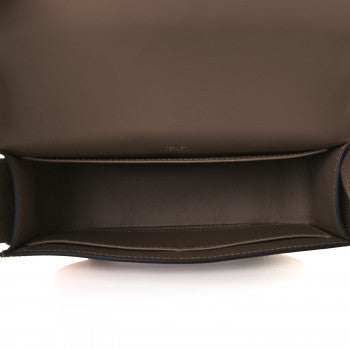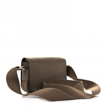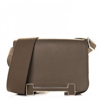 This is an authentic HERMES Chevre Mysore Geta in Etoupe. This is a small messenger style bag that is finely crafted of luxurious goatskin leather in taupe. This symmetrical bag fastens with a magnetic closure. The clasp forms a pedestal that replaces the base studs. The flap opens to a matching leather interior.