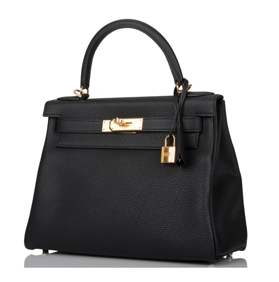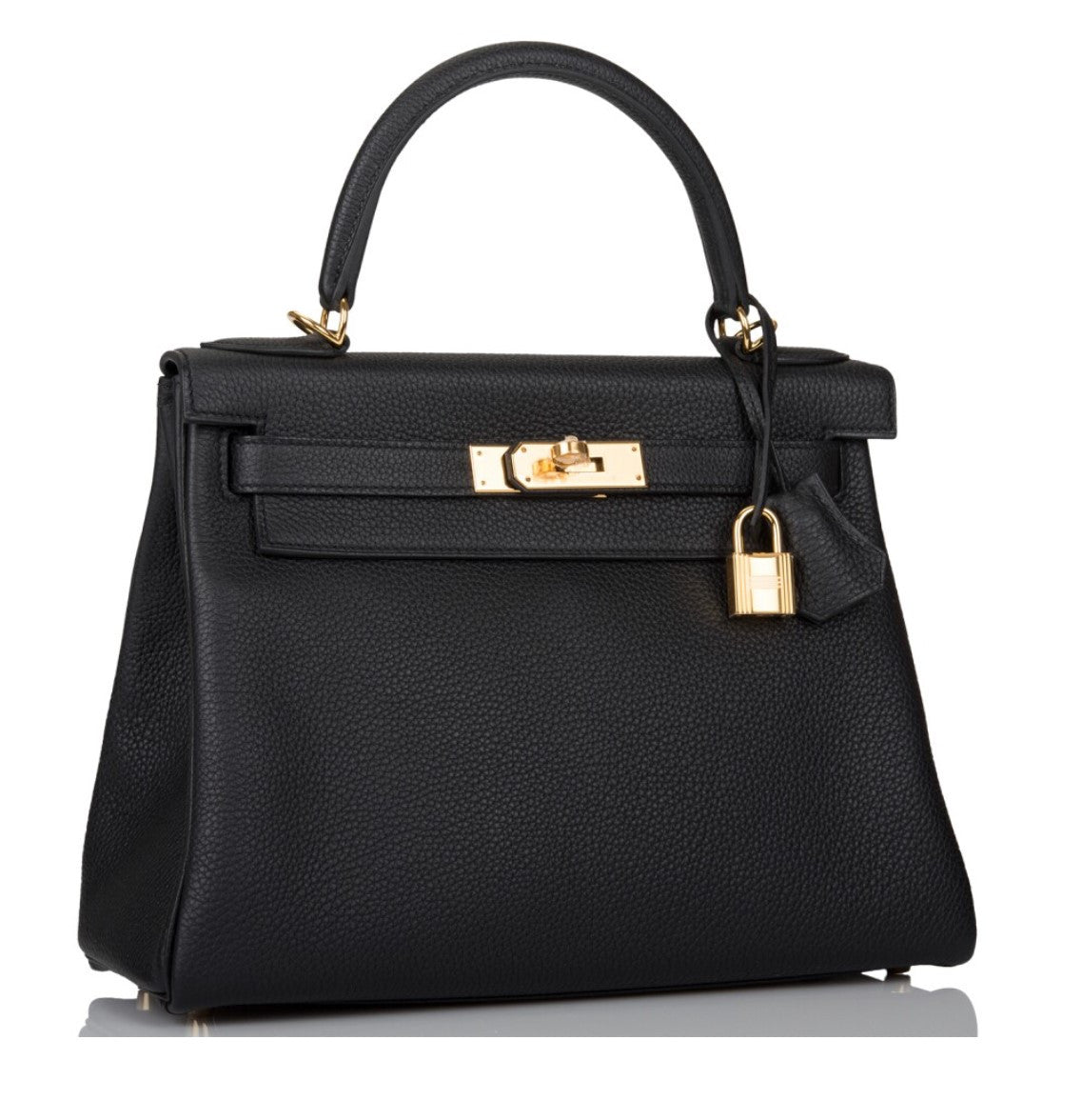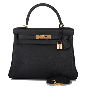 BLACK RETOURNE KELLY 28 OF TOGO LEATHER WITH GOLD HARDWARE