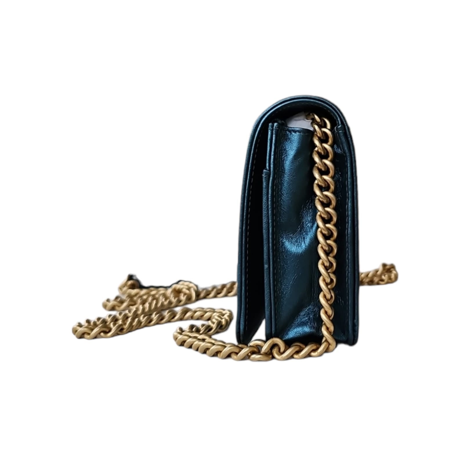 Every modern-day woman needs a Chanel Boy bag like this one! This navy bag is designed with quilted calfskin leather with antique-finish silver hardware and a chain shoulder strap. This style comes with a dust bag and box. Each beautiful item that is a part of our pre-owned collection has been carefully selected to ensure excellent quality and authenticity. This piece will make a great way toward sustainability and an even greater step towards a better wardrobe.