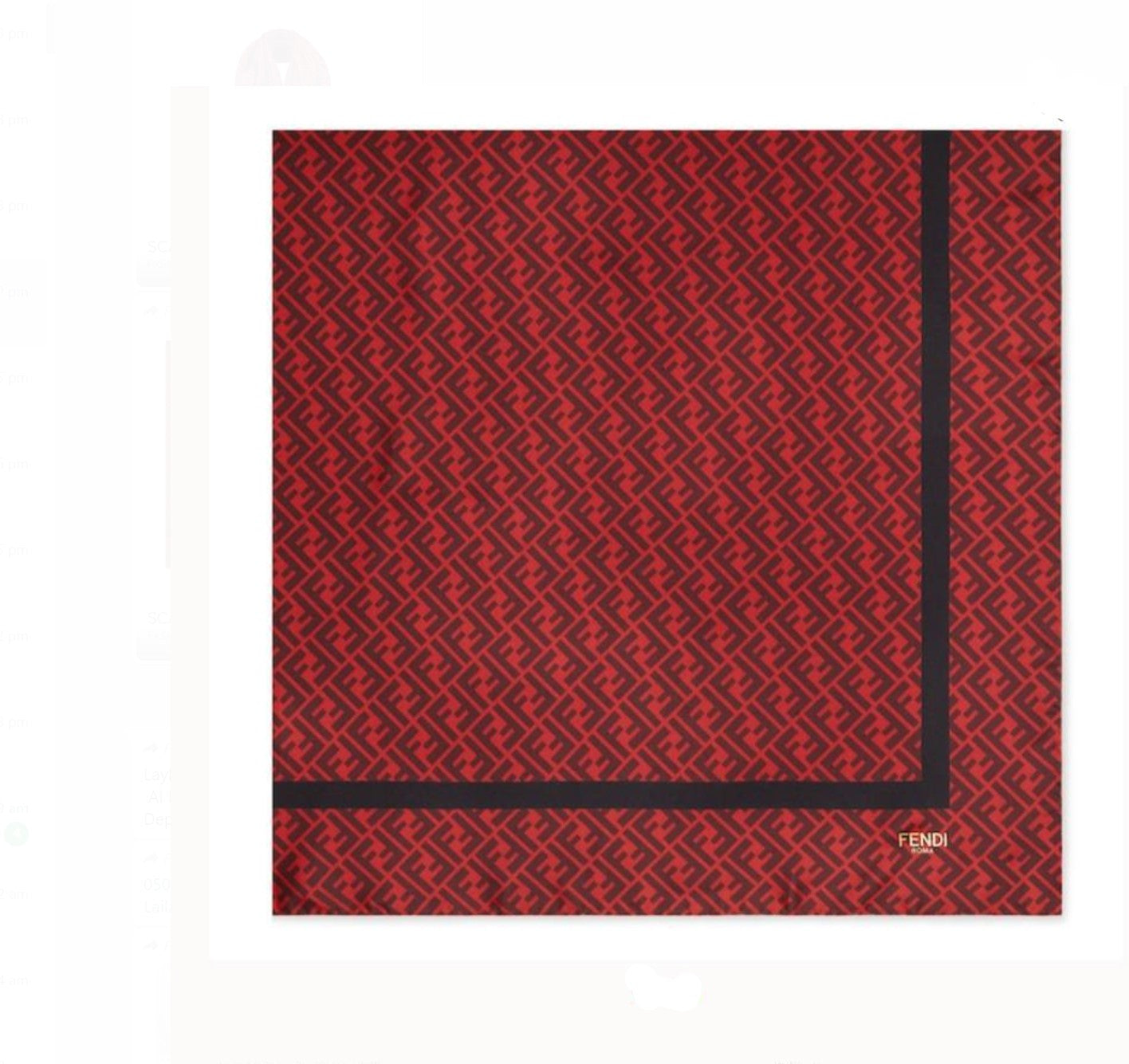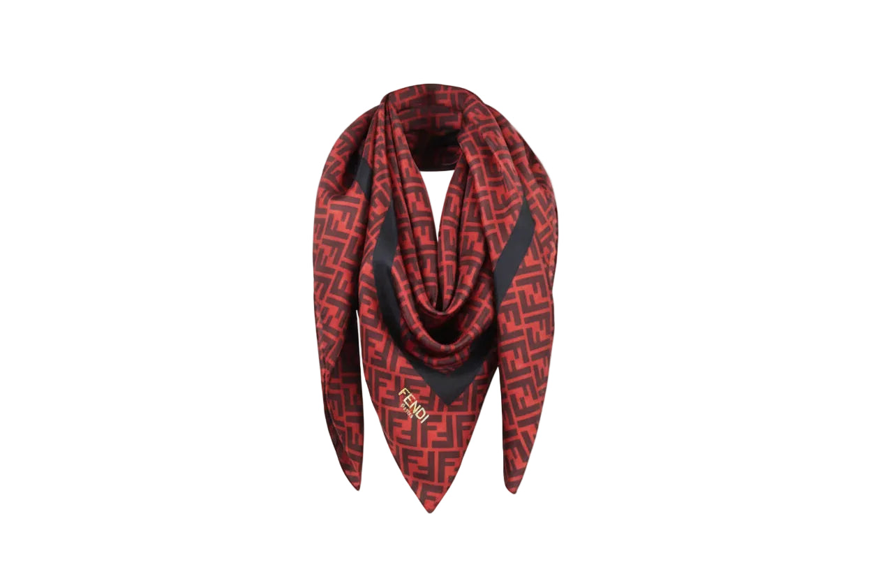 In silk twill fabric, burgundy color with black lined logo F print and black frame.