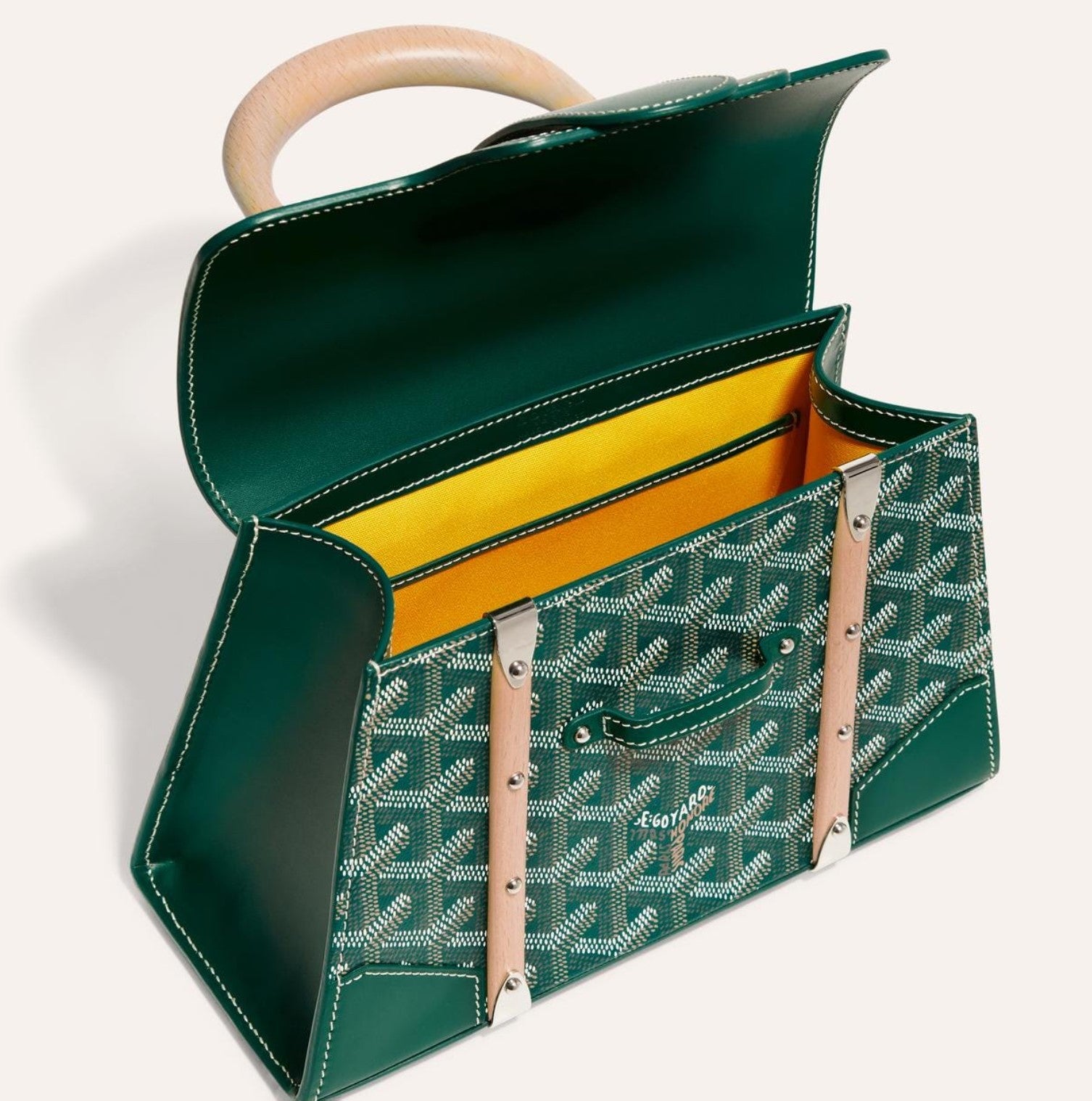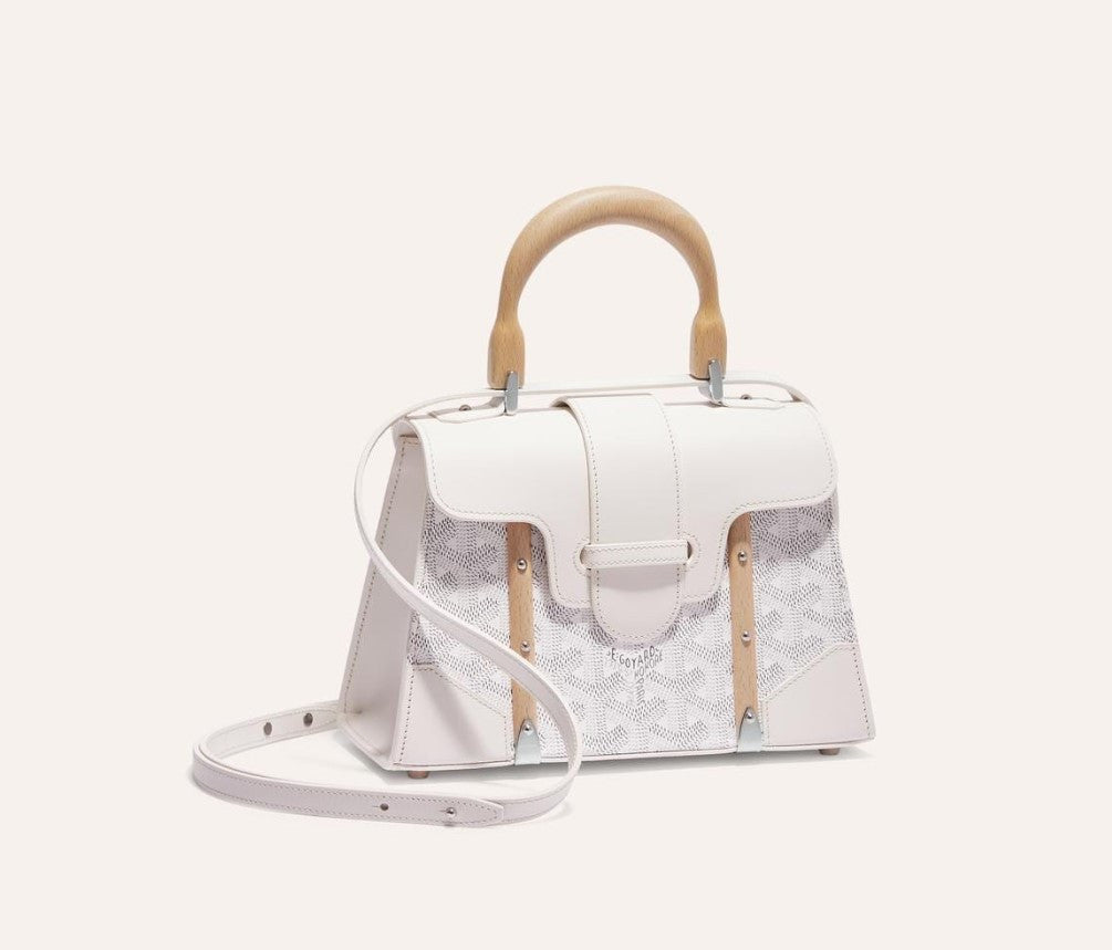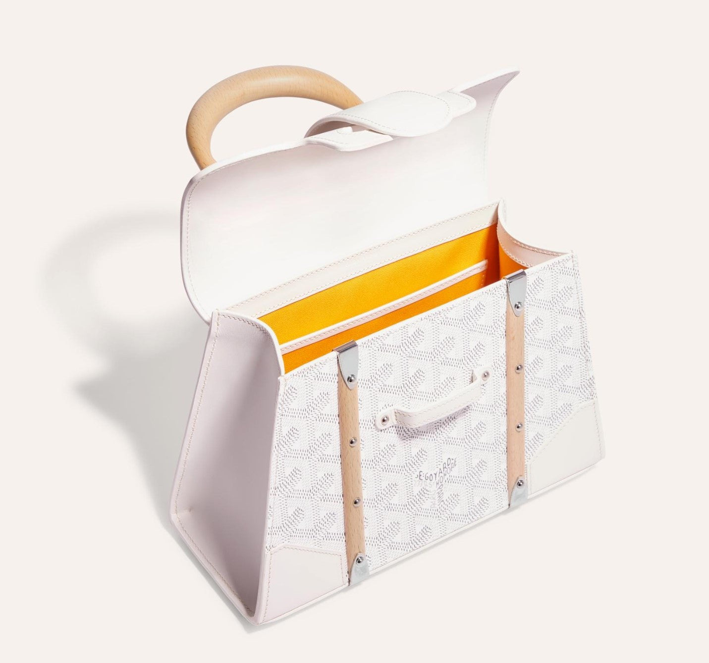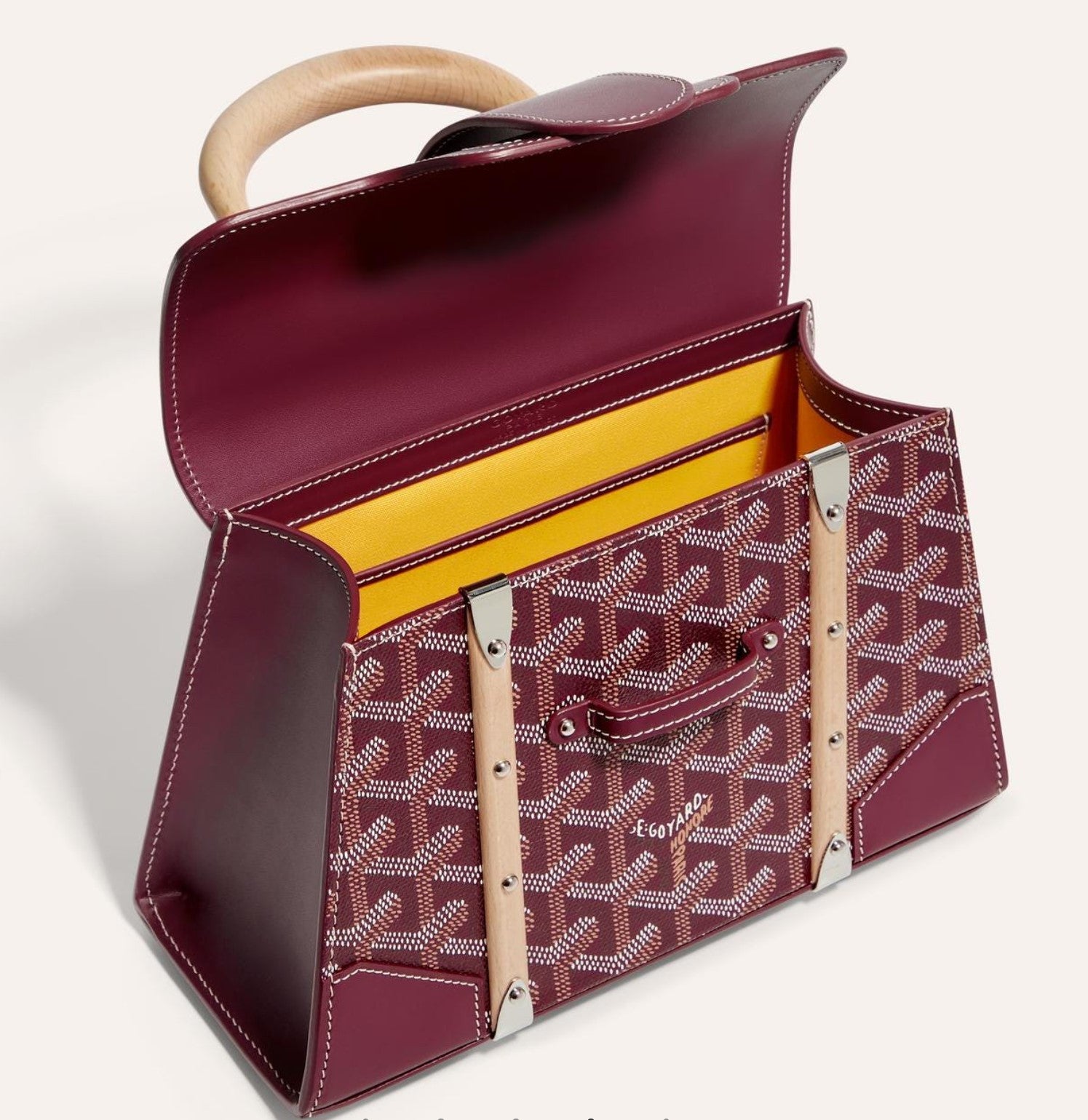 The Saigon bag is one of Maison Goyard's emblematic pieces since it interprets a large number of our trunk-making signatures, such as wood, rods, leather corners and trunk studs, in a leather-crafting way. In miniature and structured format, the Saigon bag can be worn with or without shoulder strap for an evening and elegant look.