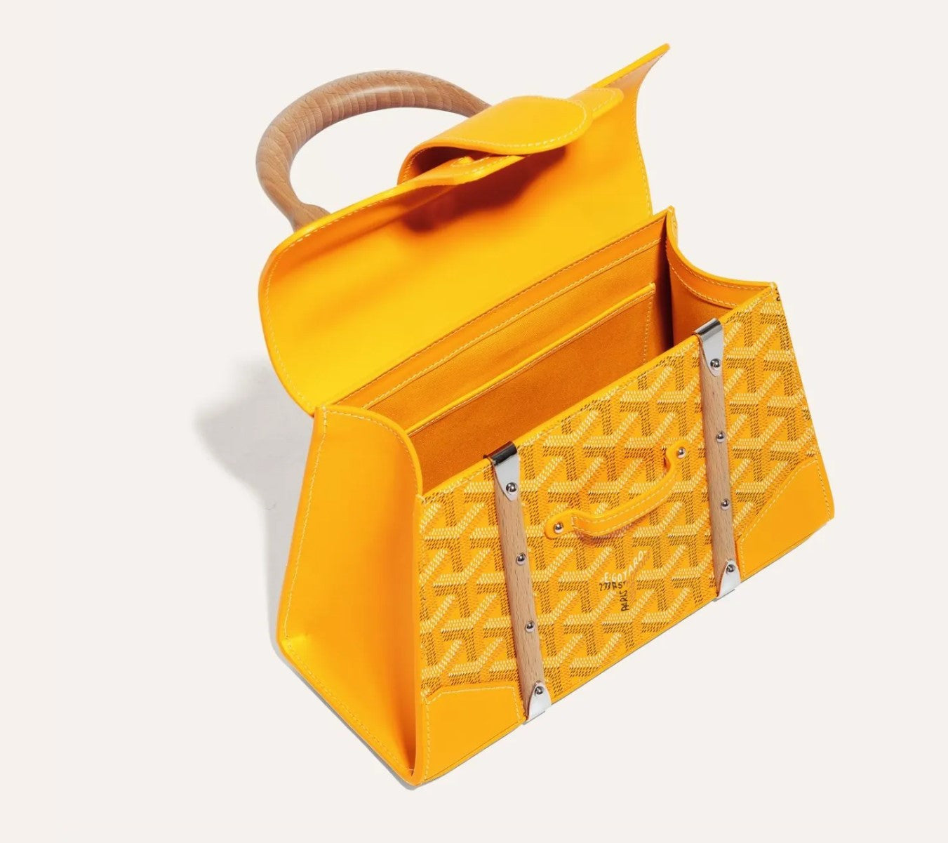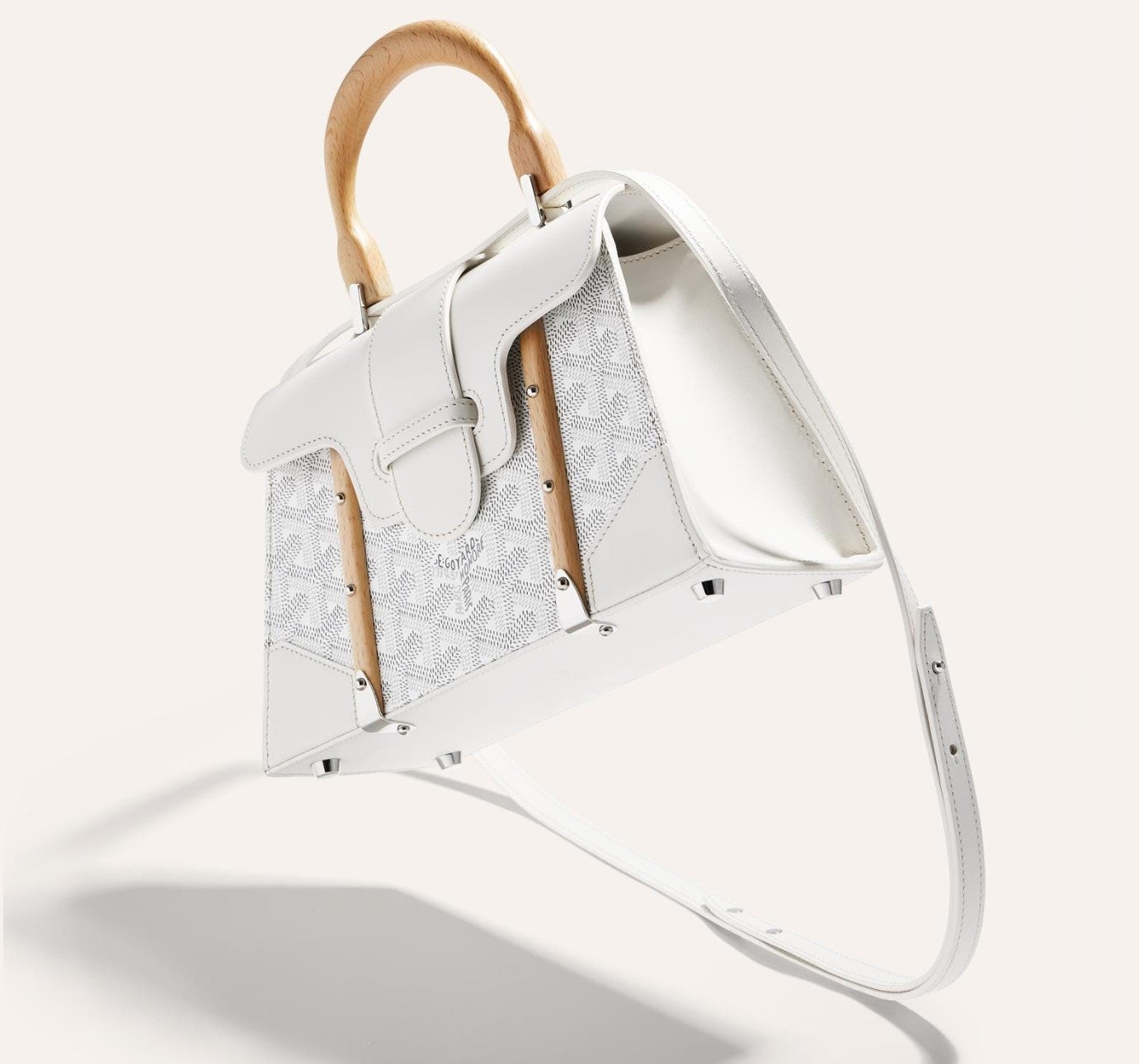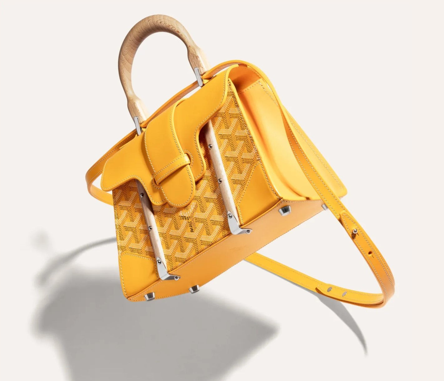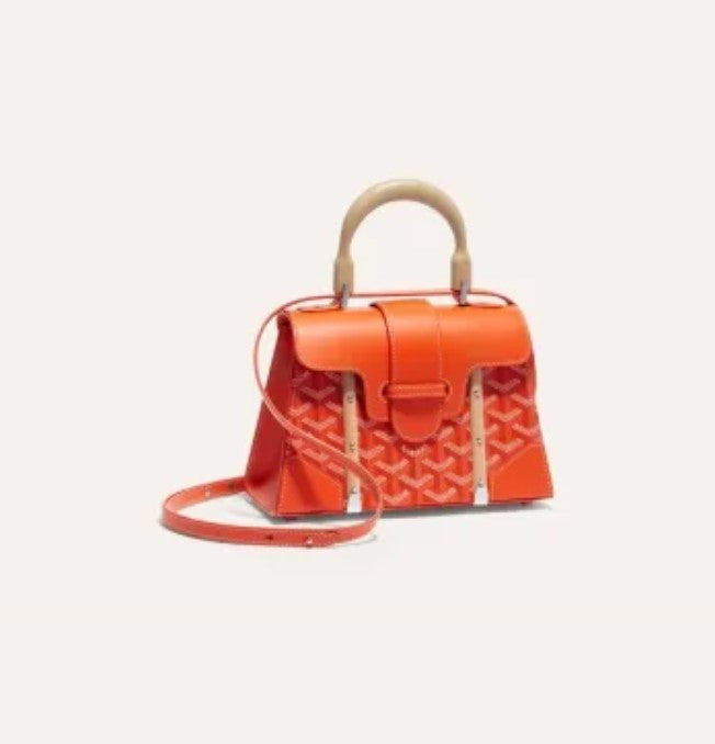 The Saigon bag is one of Maison Goyard's emblematic pieces since it interprets a large number of our trunk-making signatures, such as wood, rods, leather corners and trunk studs, in a leather-crafting way. In miniature and structured format, the Saigon bag can be worn with or without shoulder strap for an evening and elegant look.