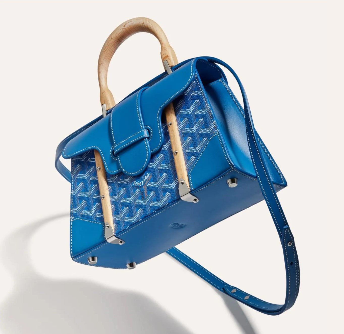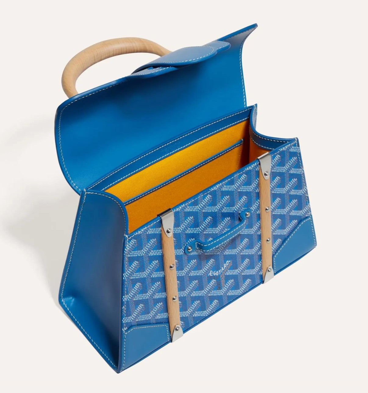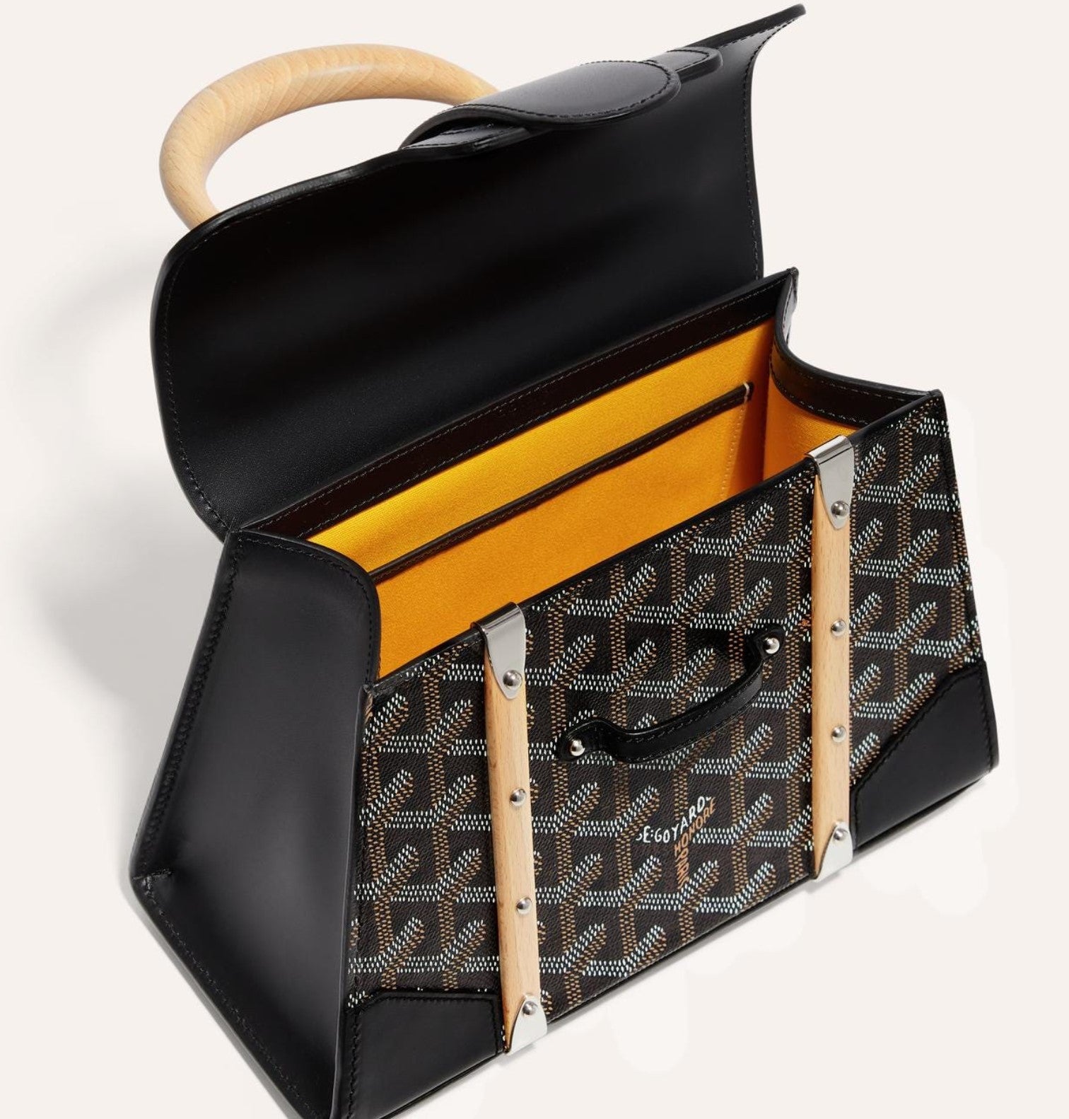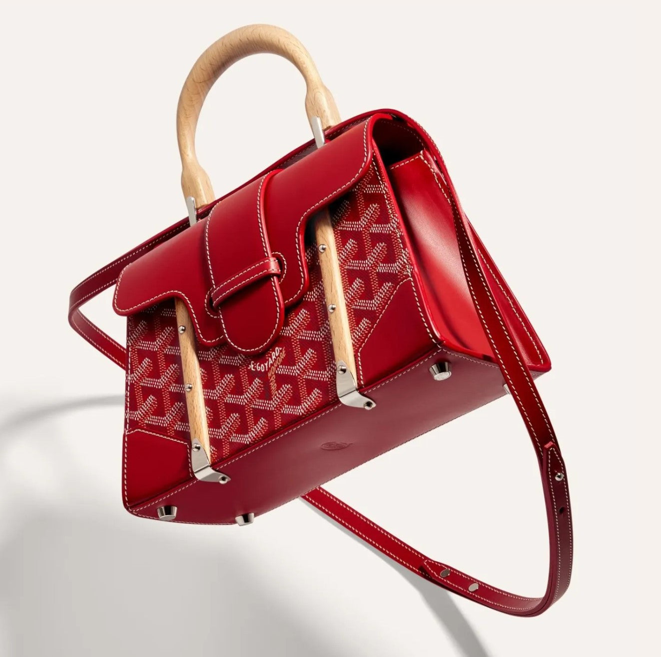 The Saigon bag is one of Maison Goyard's emblematic pieces since it interprets a large number of our trunk-making signatures, such as wood, rods, leather corners and trunk studs, in a leather-crafting way. In miniature and structured format, the Saigon bag can be worn with or without shoulder strap for an evening and elegant look.