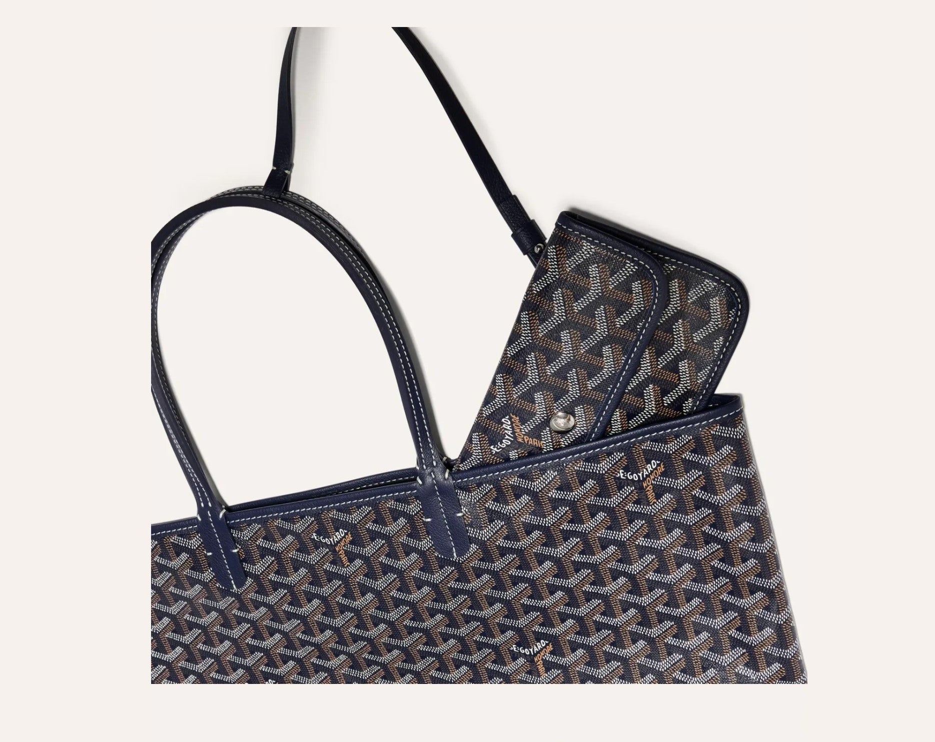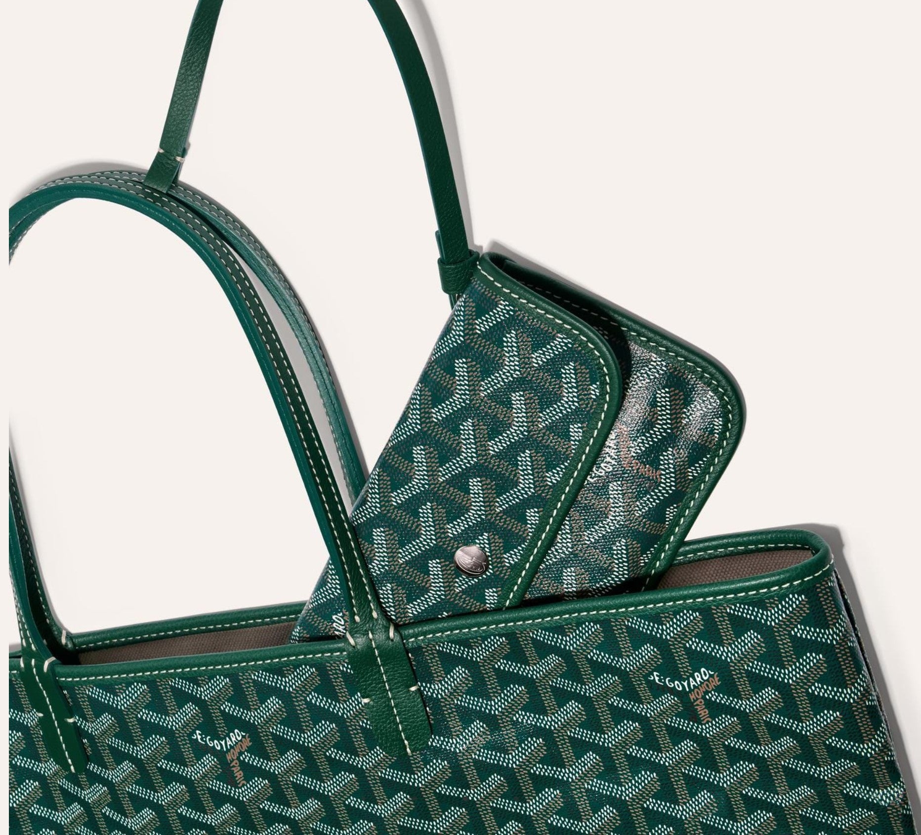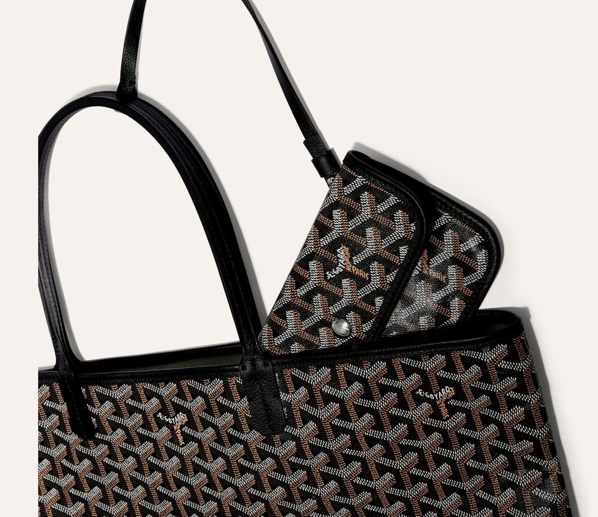 The Saint Louis PM bag is made of Goyardine canvas and is unlined, it is extremely light and completely reversible, allowing it to be worn on the front side, Goyardine canvas side, or on the reverse side, linen and cotton weaving side. Its two progressively thicker leather handles allow different wears. It comes with a removable inner pocket hooked to one of the bag's handles for quick and easy access.
