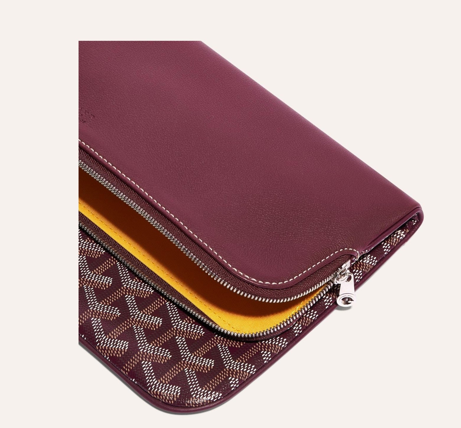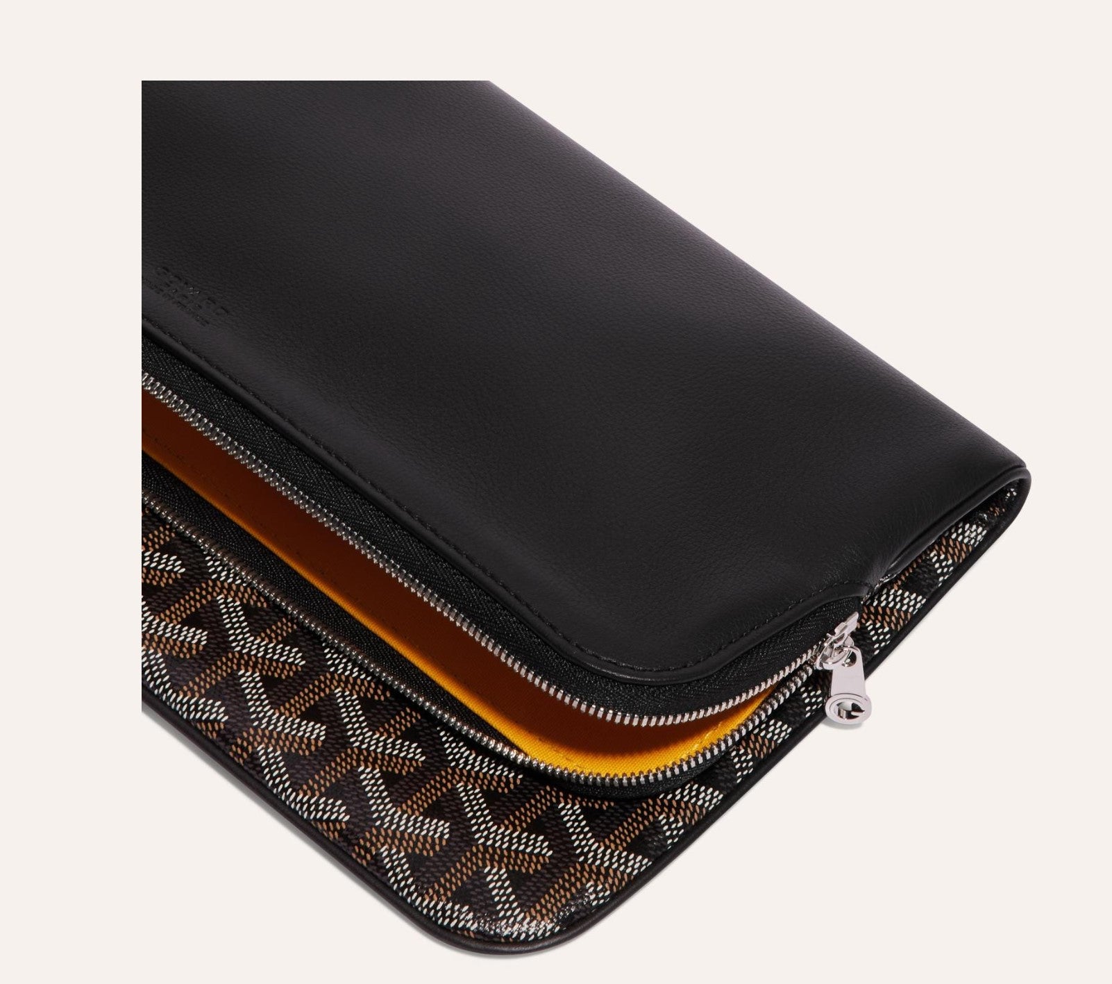 The Sainte-Marie MM clutch can be adapted to all styles and all occasions with its reversible flap: flap on the leather side for discretion and elegance or flap on the Goyardine canvas side for a graphic and relaxed note. In addition to its two large exterior patch pockets, it offers a real interior capacity, and safely accommodates the essentials of a day or an evening.