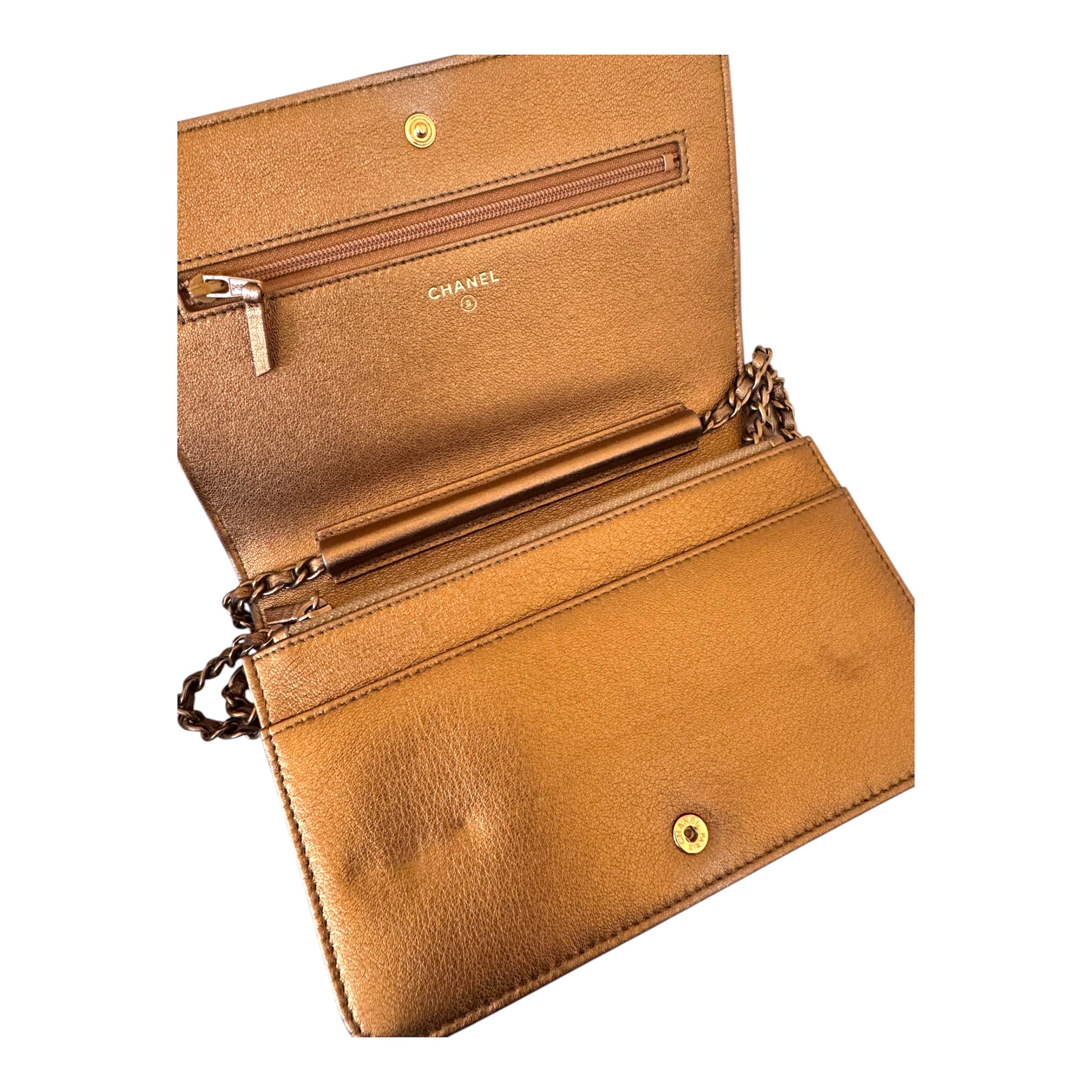 Chanel Metallic Bronze Quilted Lambskin WOC (Wallet on Chain)