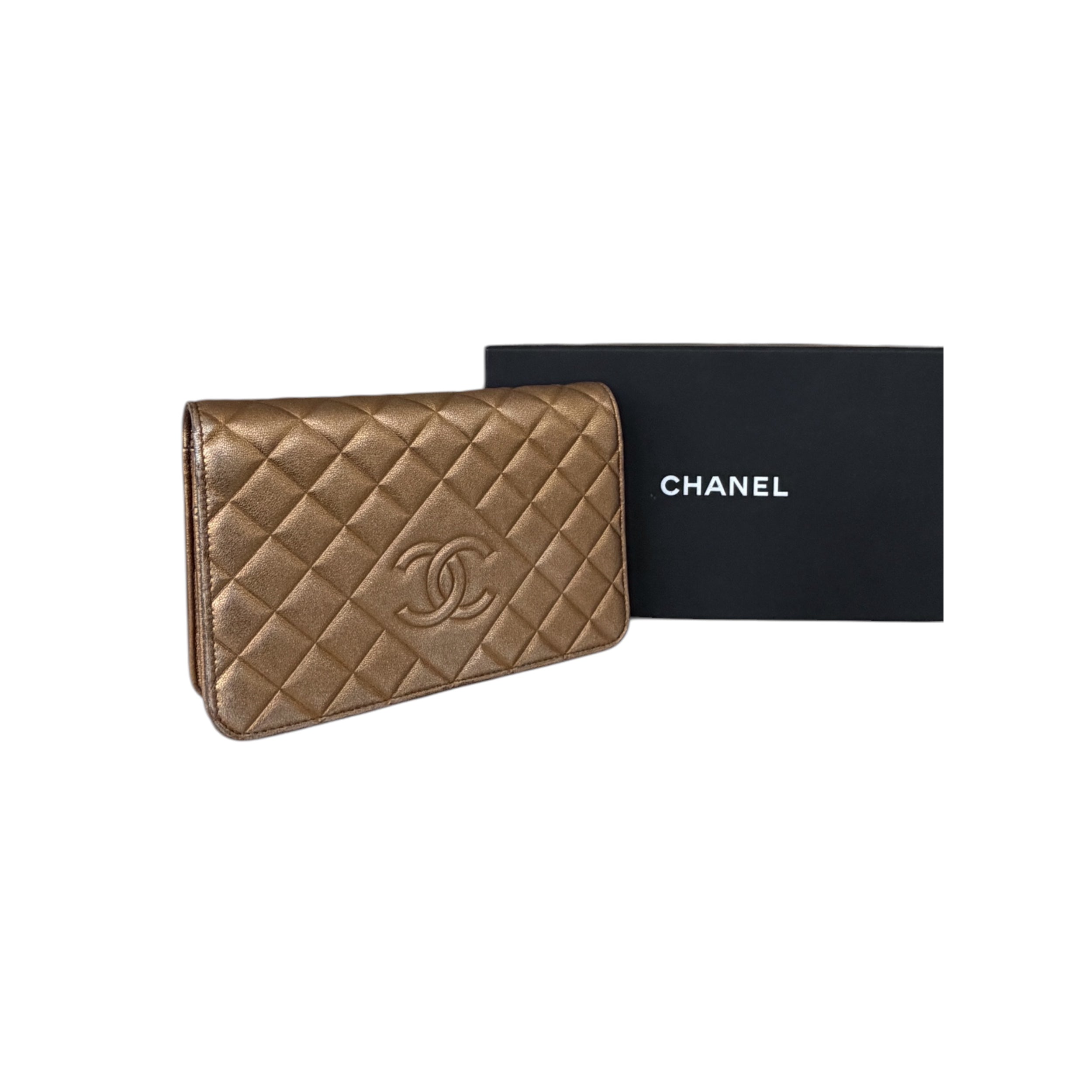The Metallic Bronze WOC is a highly sought-after seasonal color that is no longer available in boutiques. It is a versatile "day-to-night" accessory that holds its value remarkably well in the luxury secondary market.