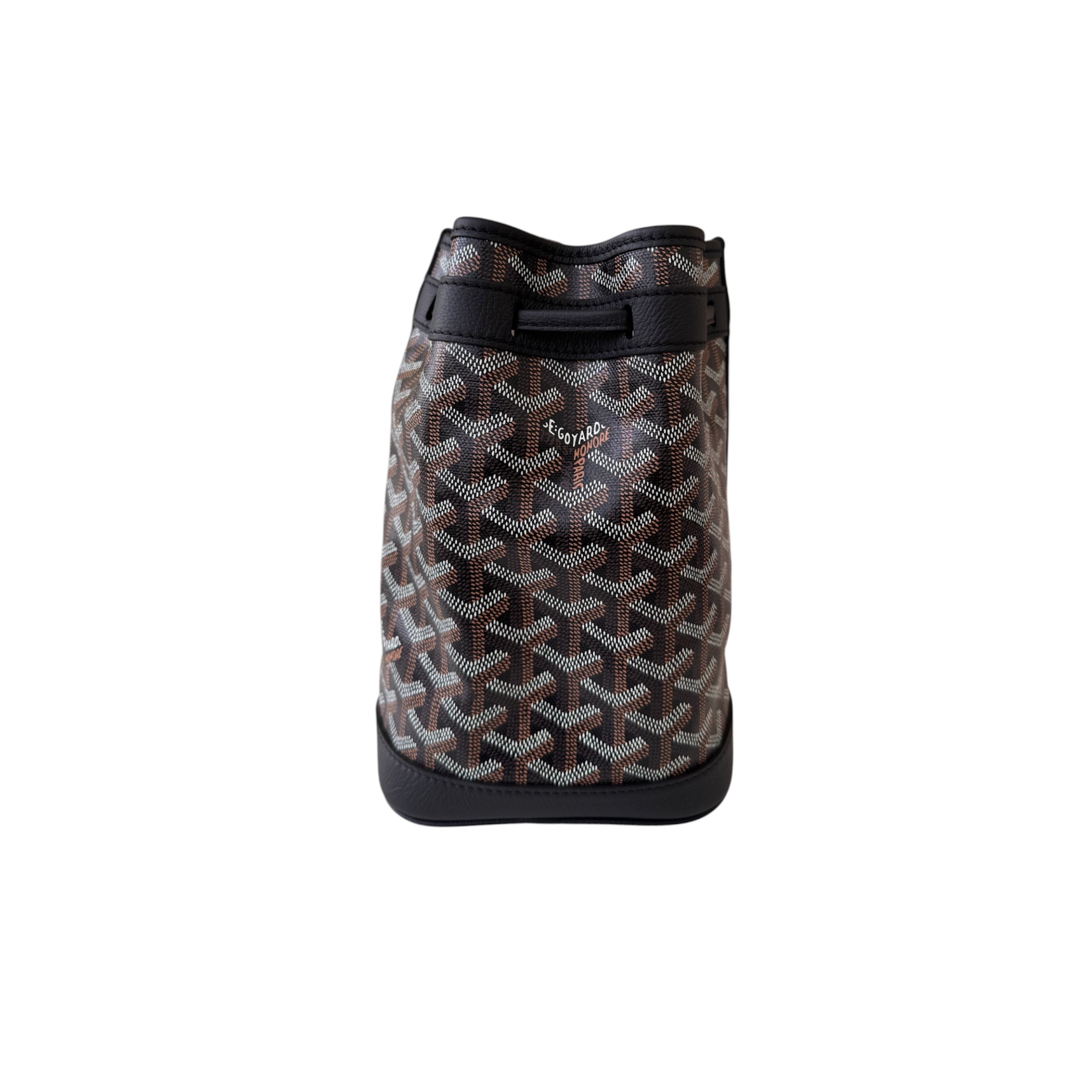 - Color: Classic Black (Noir) with the signature Goyardine chevron pattern and black leather trim.