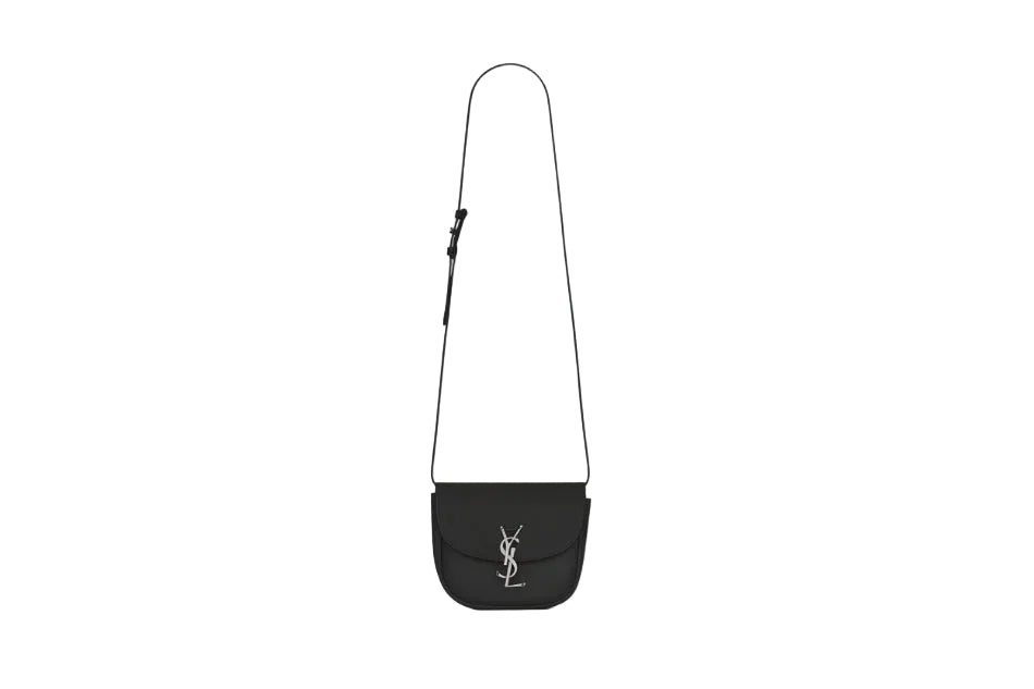 Leather Kaia logo shoulder bag from SAINT LAURENT featuring signature YSL logo plaque, adjustable shoulder strap, foldover top and internal patch pocket.