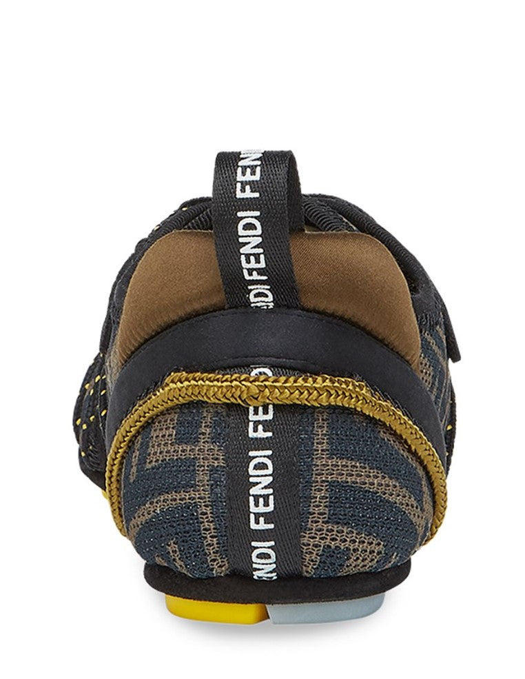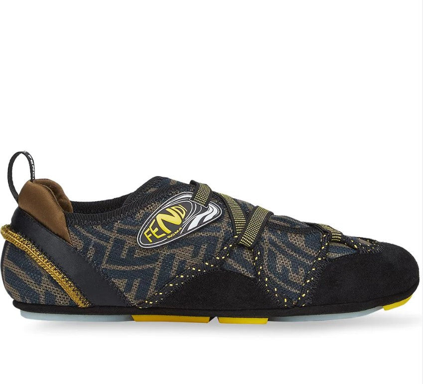 Made in Italy, Fendi's "Fendi Flex" sneakers showcase the house's FF Vertigo-print mesh accented with suede.