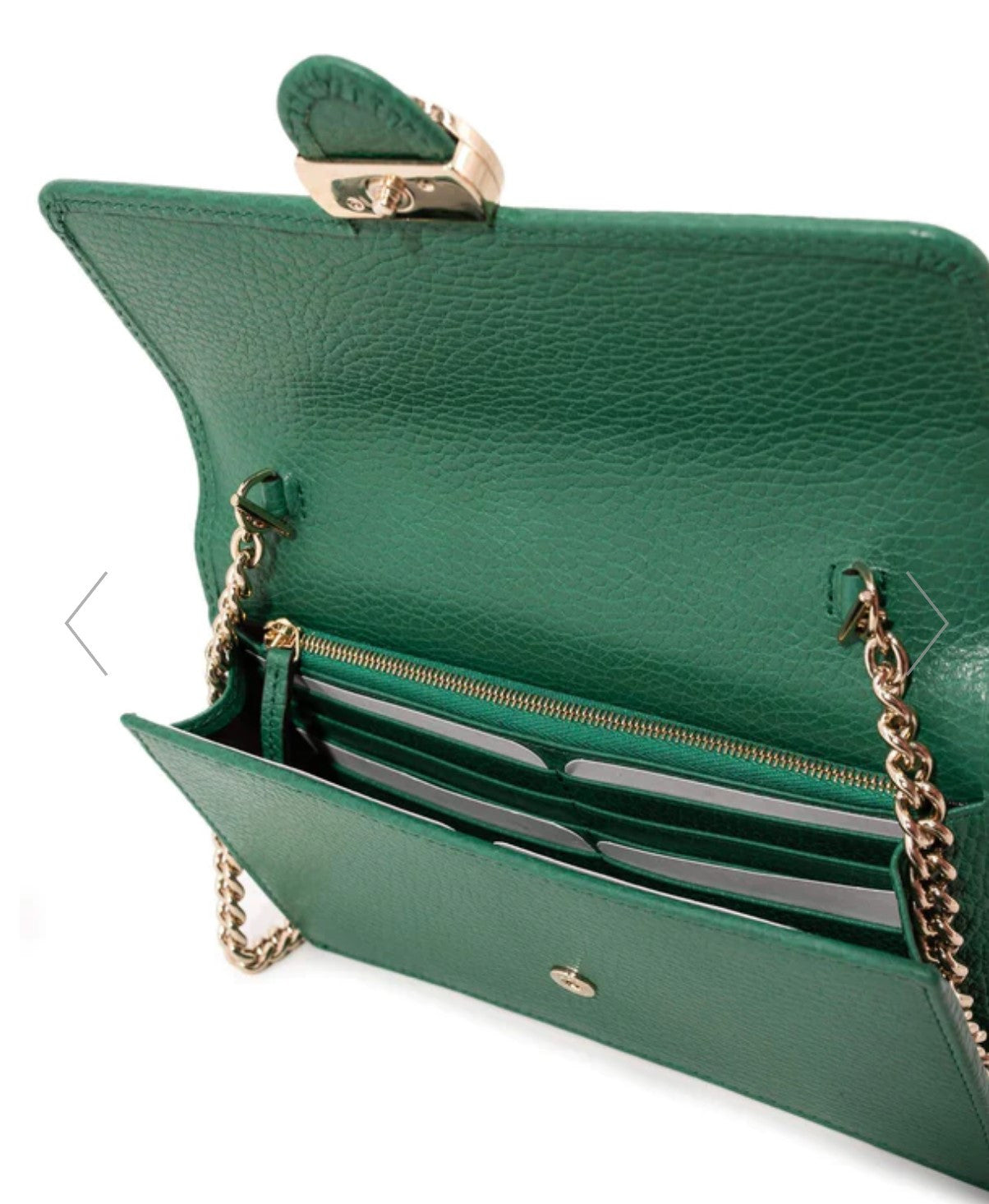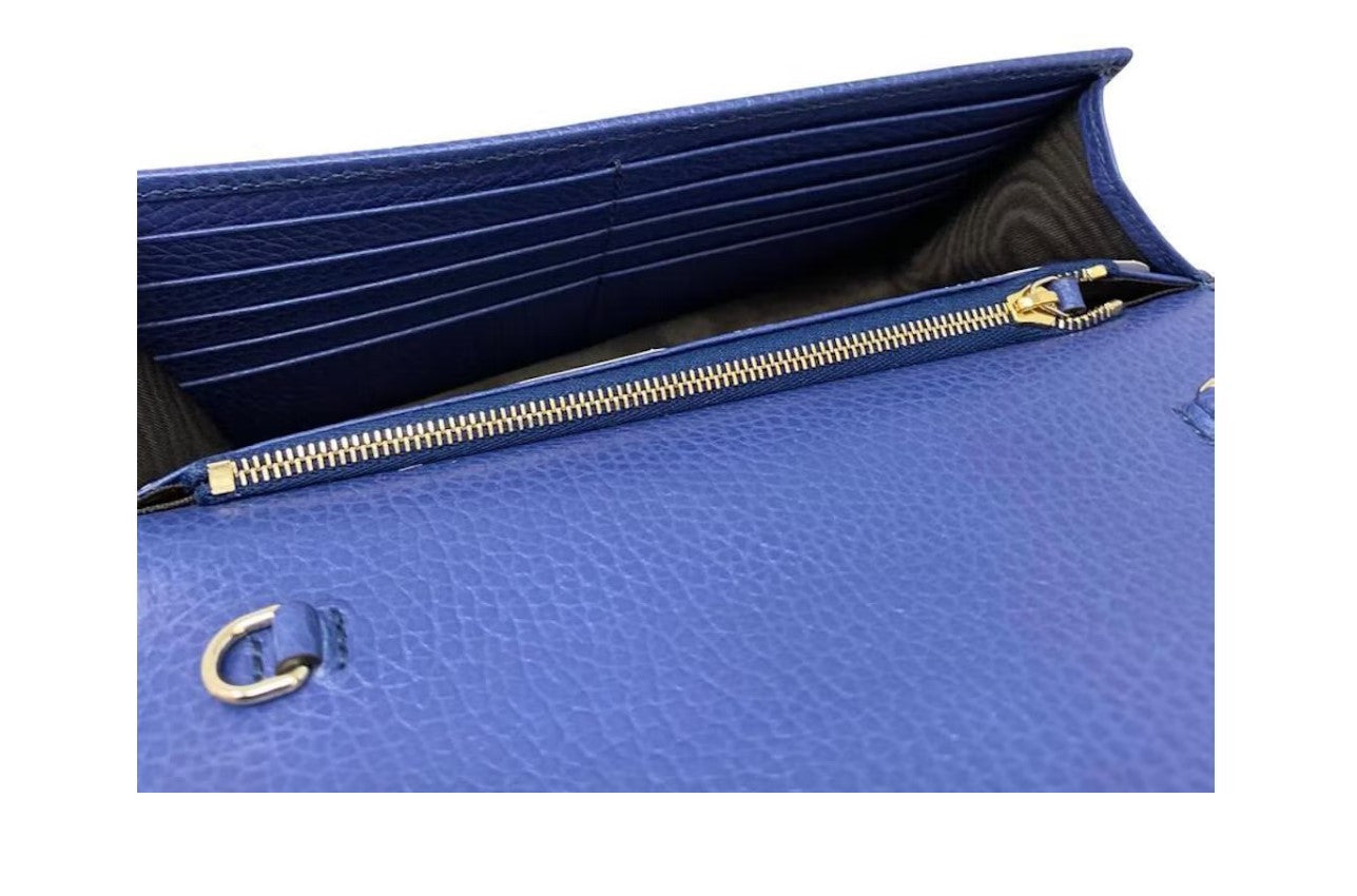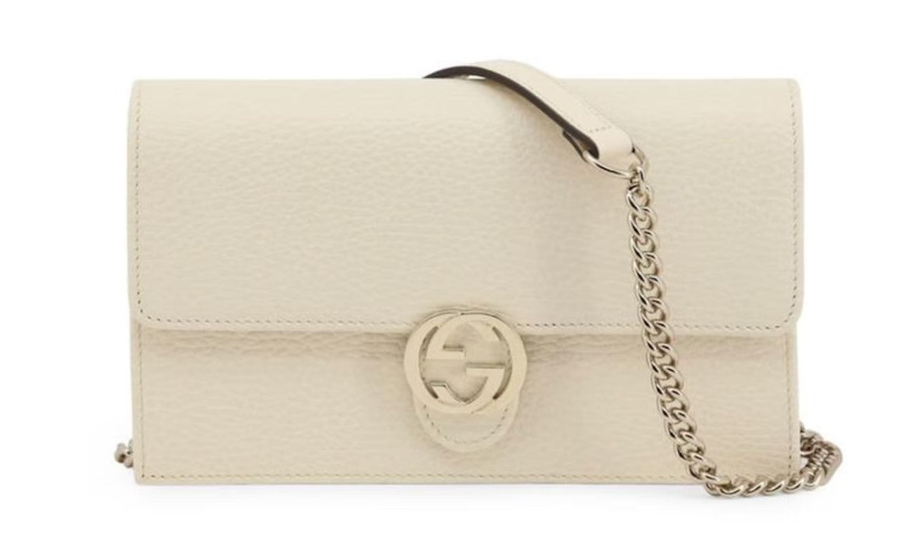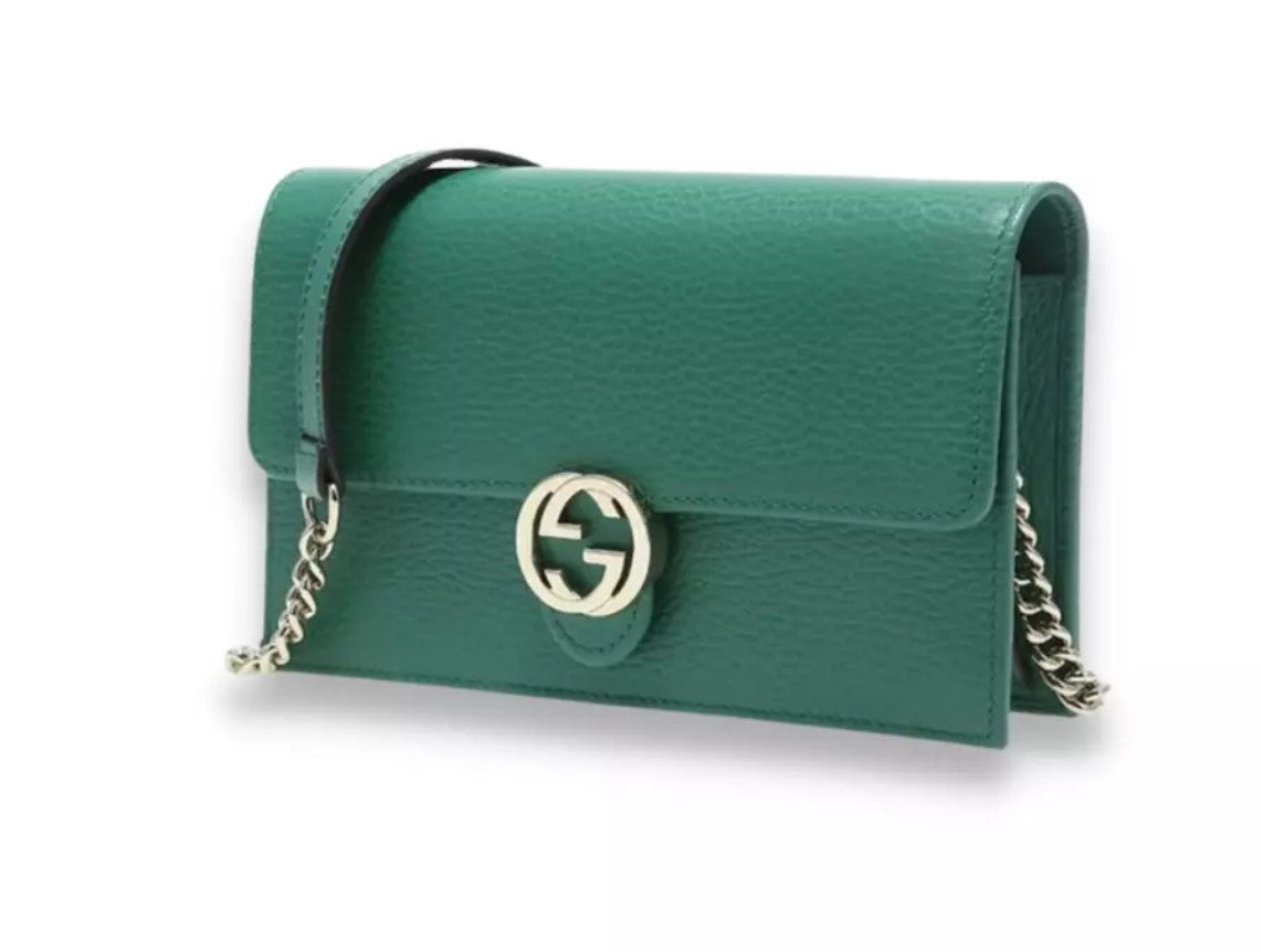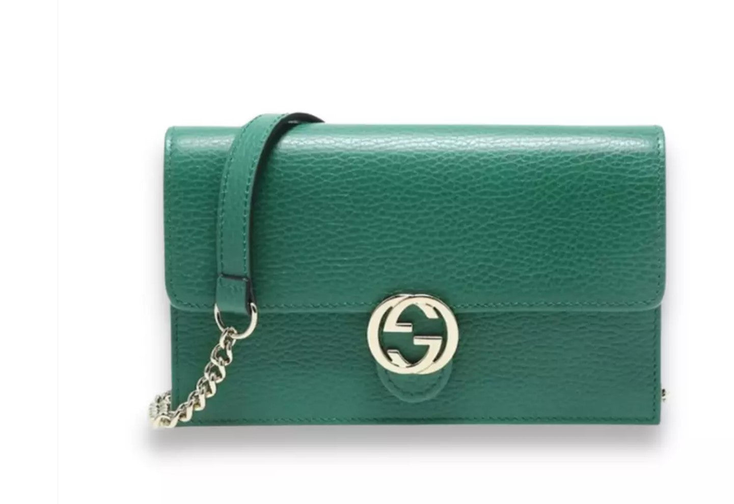 Gucci Interlocking G Clutch Wallet on Chain Crossbody Shoulder Bag Authenticity Guaranteed Leather Interlocking G plaqueGold-tone hardwareChain shoulder strap1 billfold18 card slotsZip coin compartment