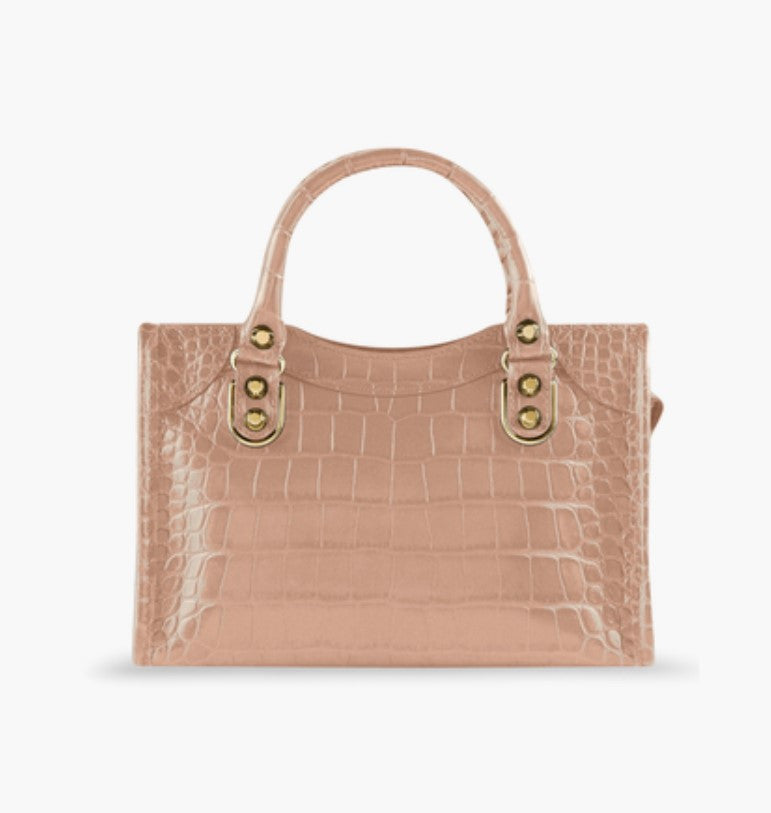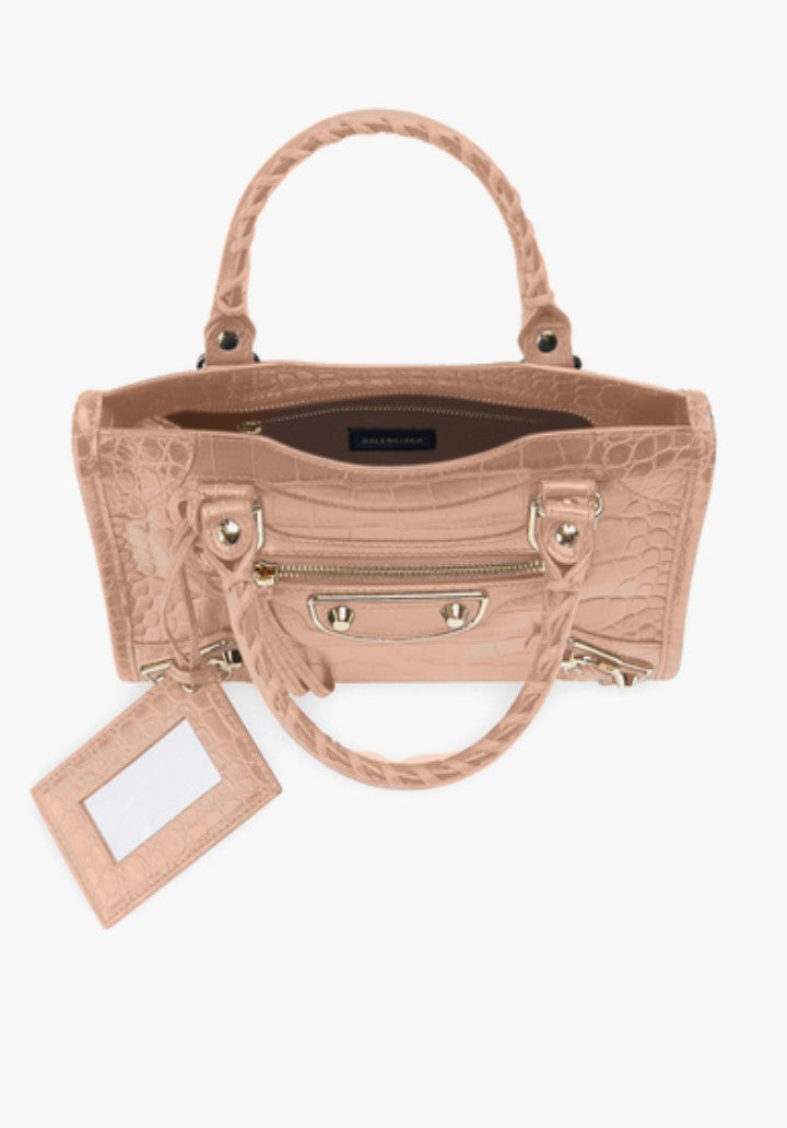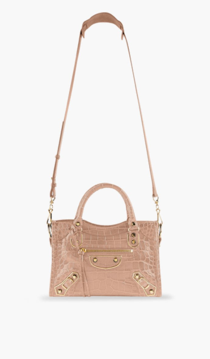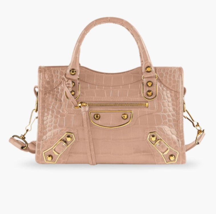 · This Balenciaga Metallic Edge City Mini Shoulder Bag has been crafted with croc-embossed calfskin leather. It features a removable and adjustable crossbody strap, zipped closure, shiny gold-tone hardware, interior zipped pocket and phone compartment, front zipped pocket and a detachable leather-encased mirror.le