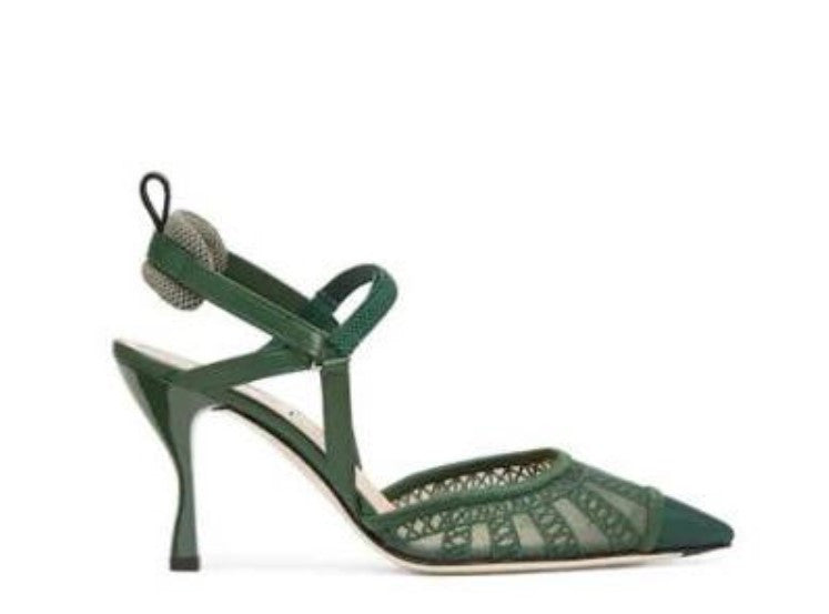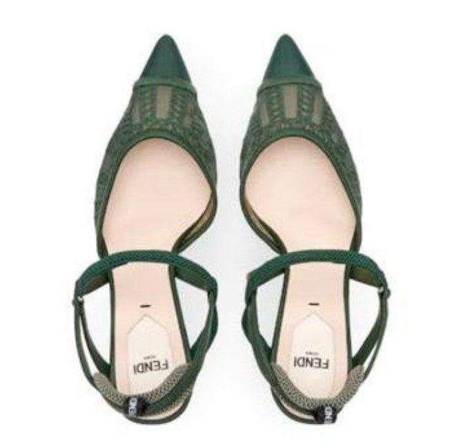 These Breathtaking Mesh Slingback Pumps will make you want to keep walking and showing off the Fendi slingback silhouette, detailed with an elegant mesh on the top and a geometrical embroidered accent. The nature of this beauty is its pointed toe box and leather sole. These trendy pumps are never out of style, pair them with a white floral dress and look classy and cute. Made in the city of art; Italy.