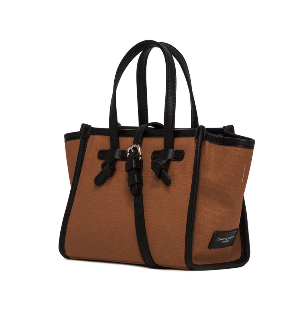 The Miss Marcella by Gianni Chiarini Firenze is a super chic and elegant accessory, yet casual. Made of two-tone canvas. The minimal design is enriched with contrasting leather profiles. A must-have of the season, to be carried by hand or crossbody with its thin leather shoulder strap in the same tone. Dimensions: 19x15x10 cm.
