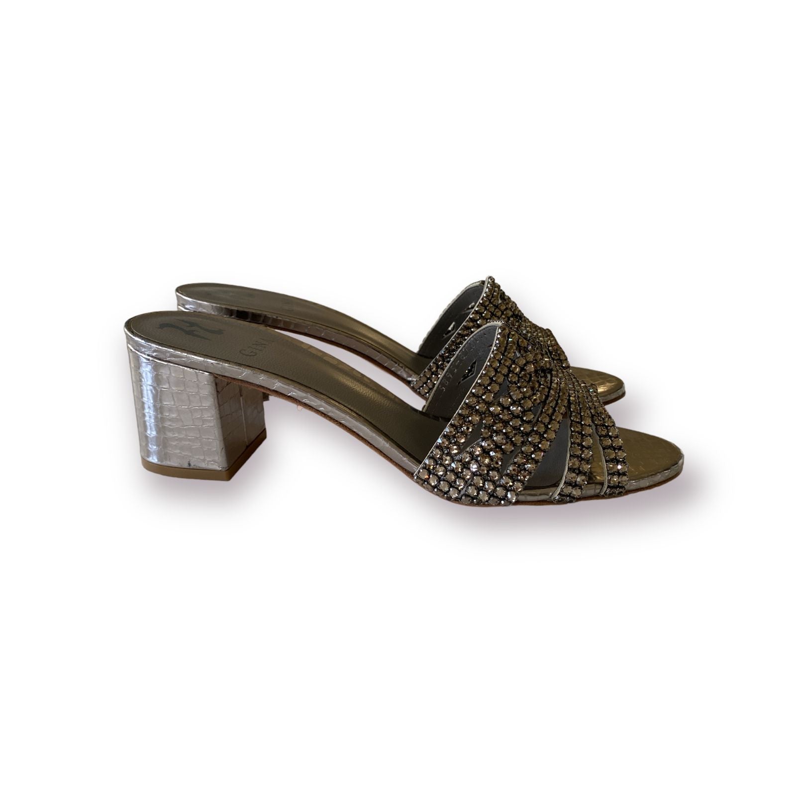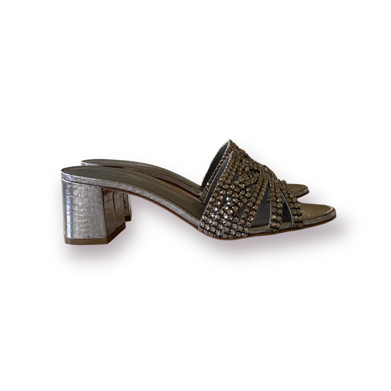 VISAGE a square-toe sandal on an effortlessly wearable 55mm architectural block heel, is the essential slipper to take from day to eveningwear. Embellished with a signature GINA sandal trim handmade with crystals from Swarovski®, and with a vibrant matching lining, VISAGE is the definition of versatile luxury.