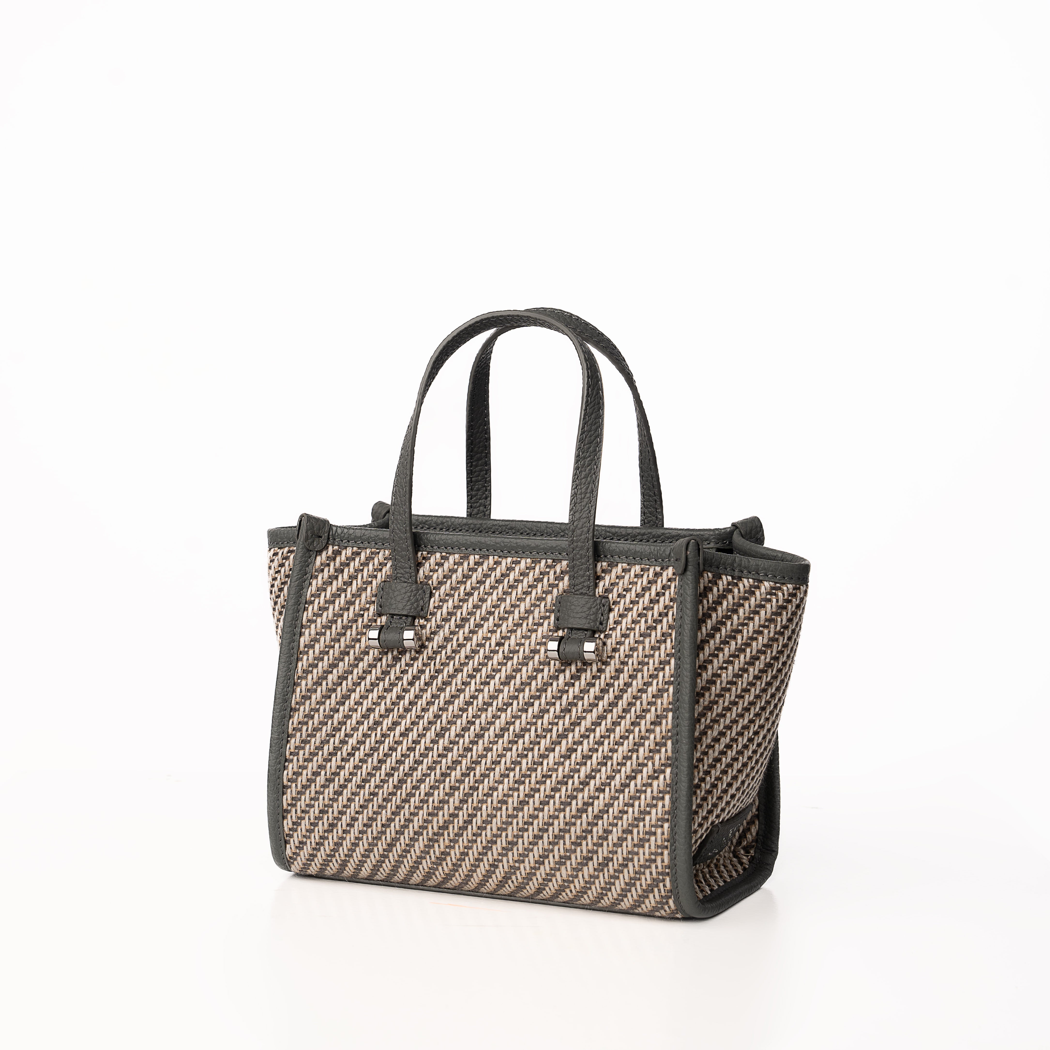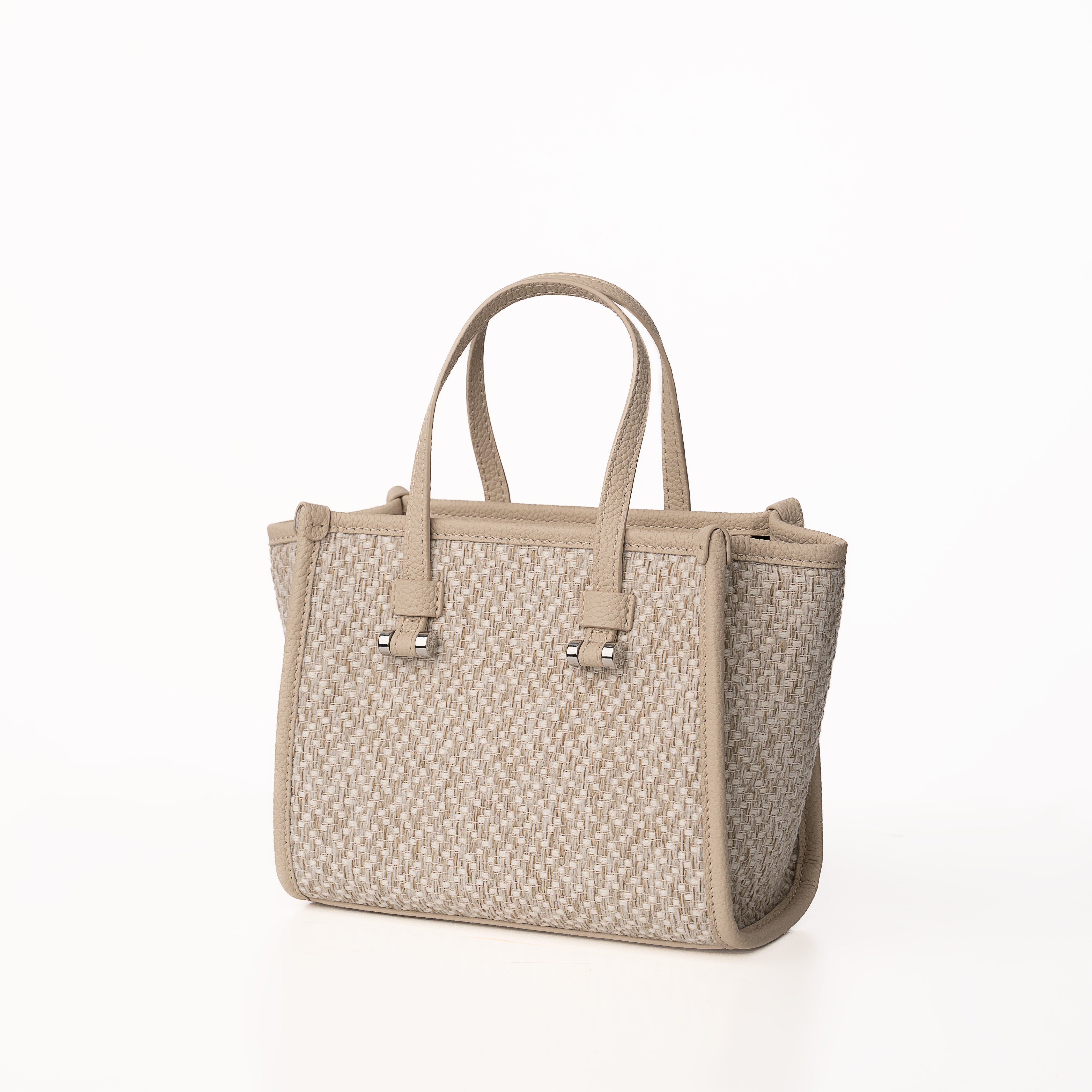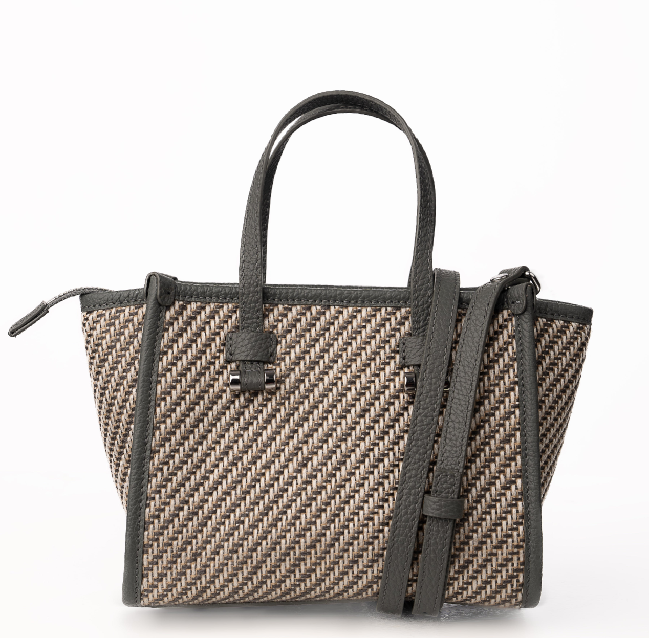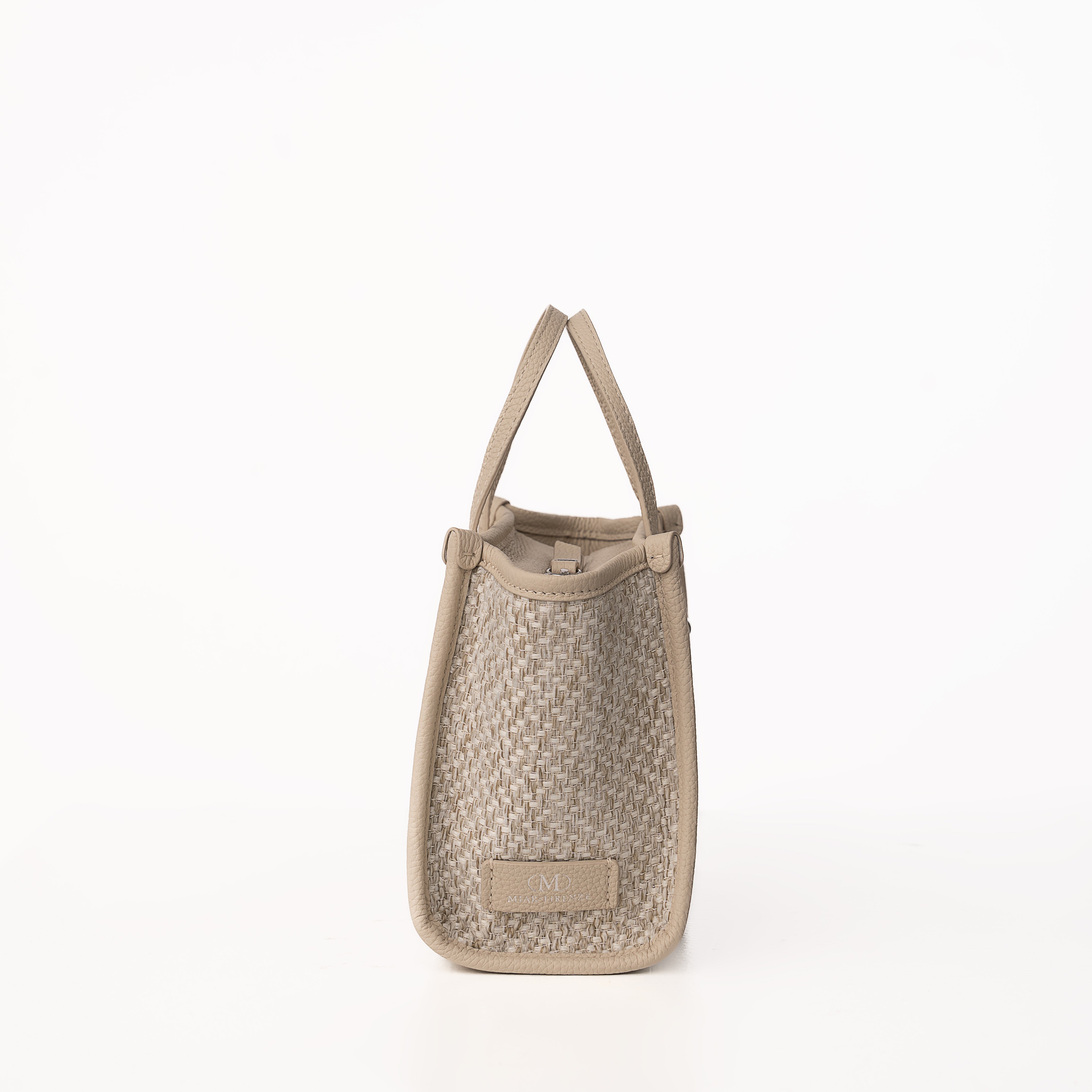 Blaire Mini Tote Bag is made with Weave fabric Material and Cow Leather with Black Twill fabric. This Bag can be wearable as a handbag or cross-body thanks to the thin detachable long strap. This bag is also available with 4 colors made with silver metal and zip closure with 3 cards slots